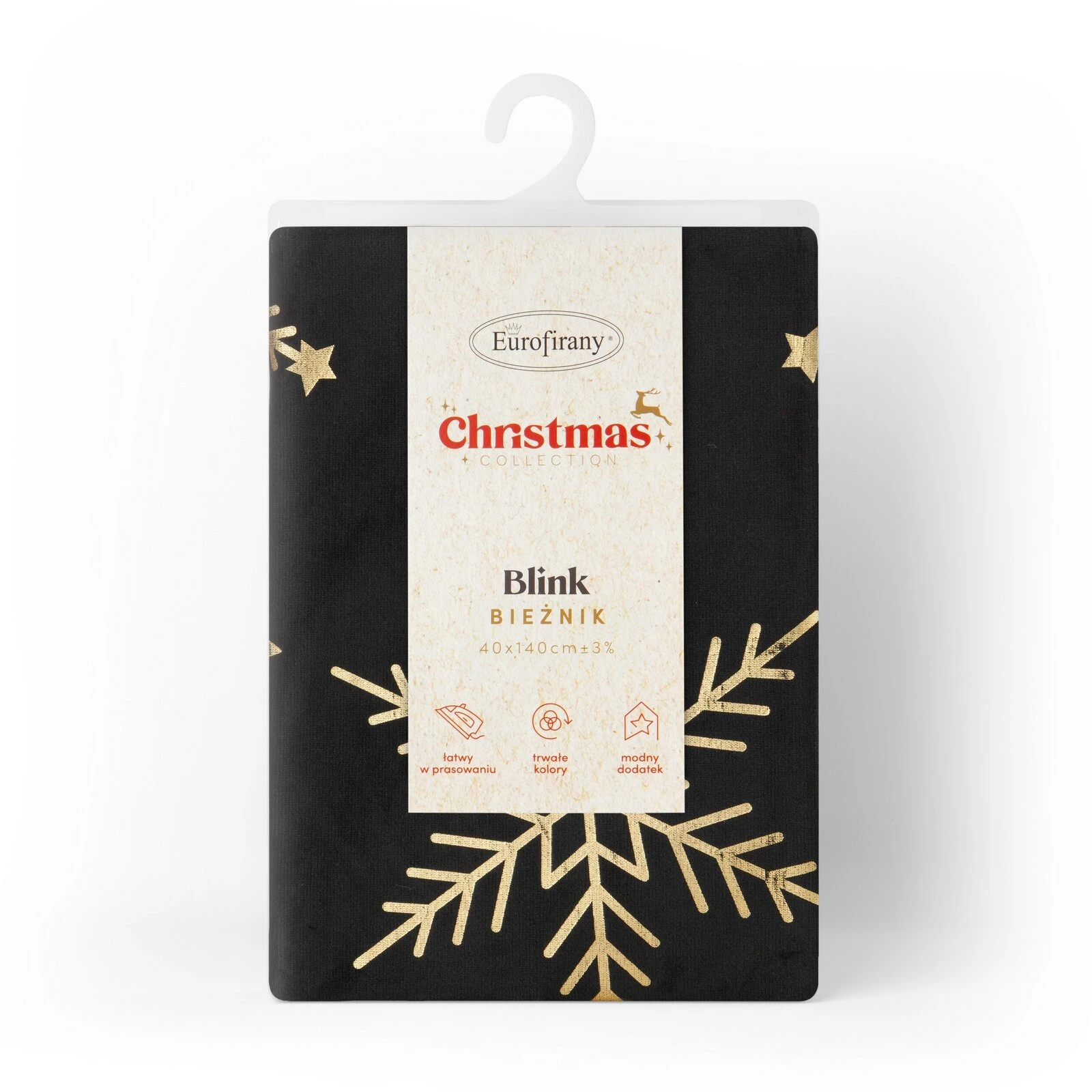 Bieżnik świąteczny rozm.: 40 x 140cm, kolor czarny z szampańskim nadrukiem