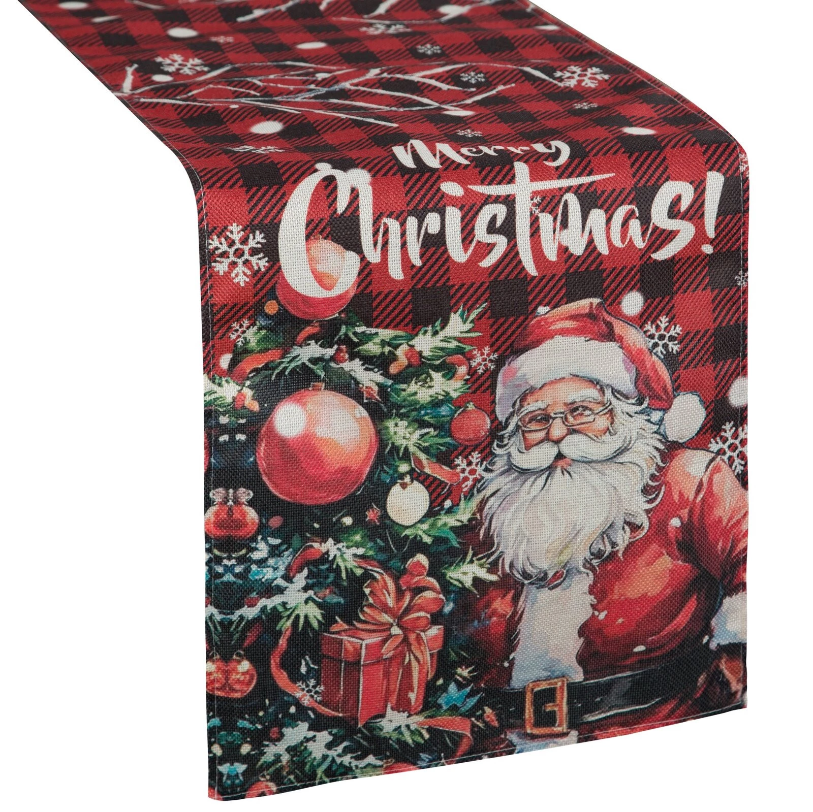 Bieżnik świąteczny 33×183 cm – czerwony w kratę z Mikołajem