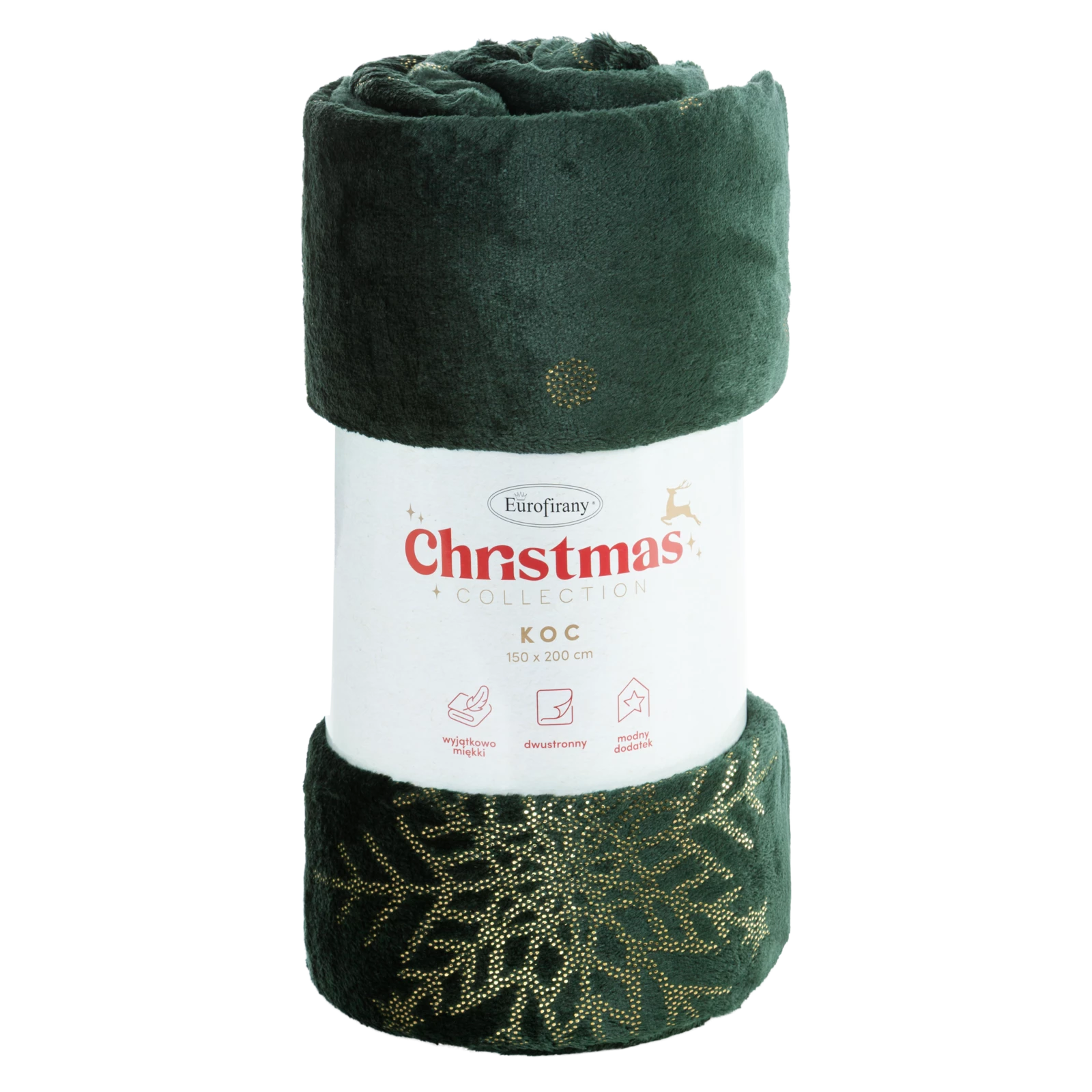 - Miękki i przyjemny w dotyku koc świąteczny, który doda wnętrzu ciepła i przytulnego klimatu. Idealny do okrycia w chłodne dni lub jako dekoracja kanapy, fotela czy łóżka. Świetnie sprawdzi się także jako pomysł na prezent.