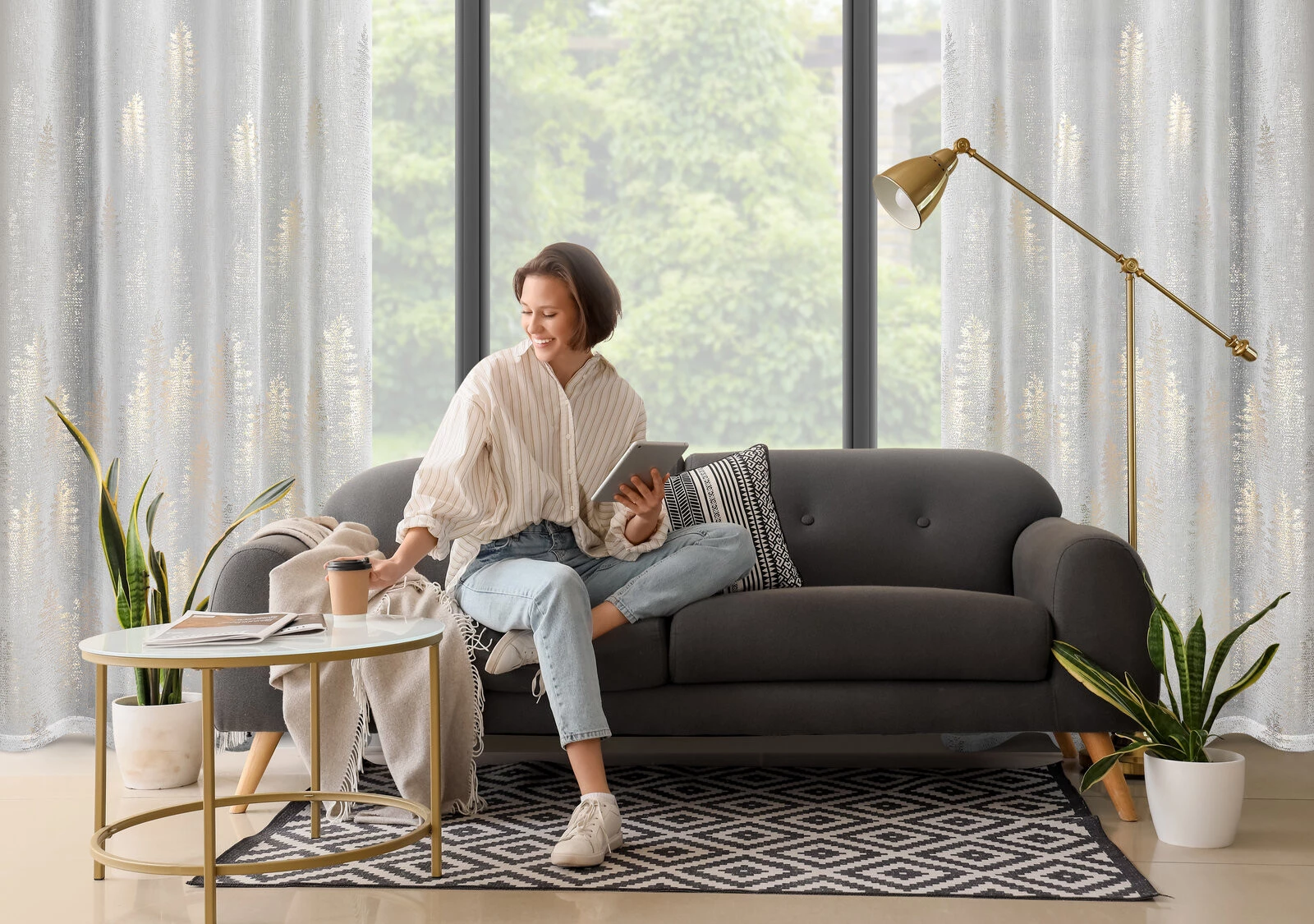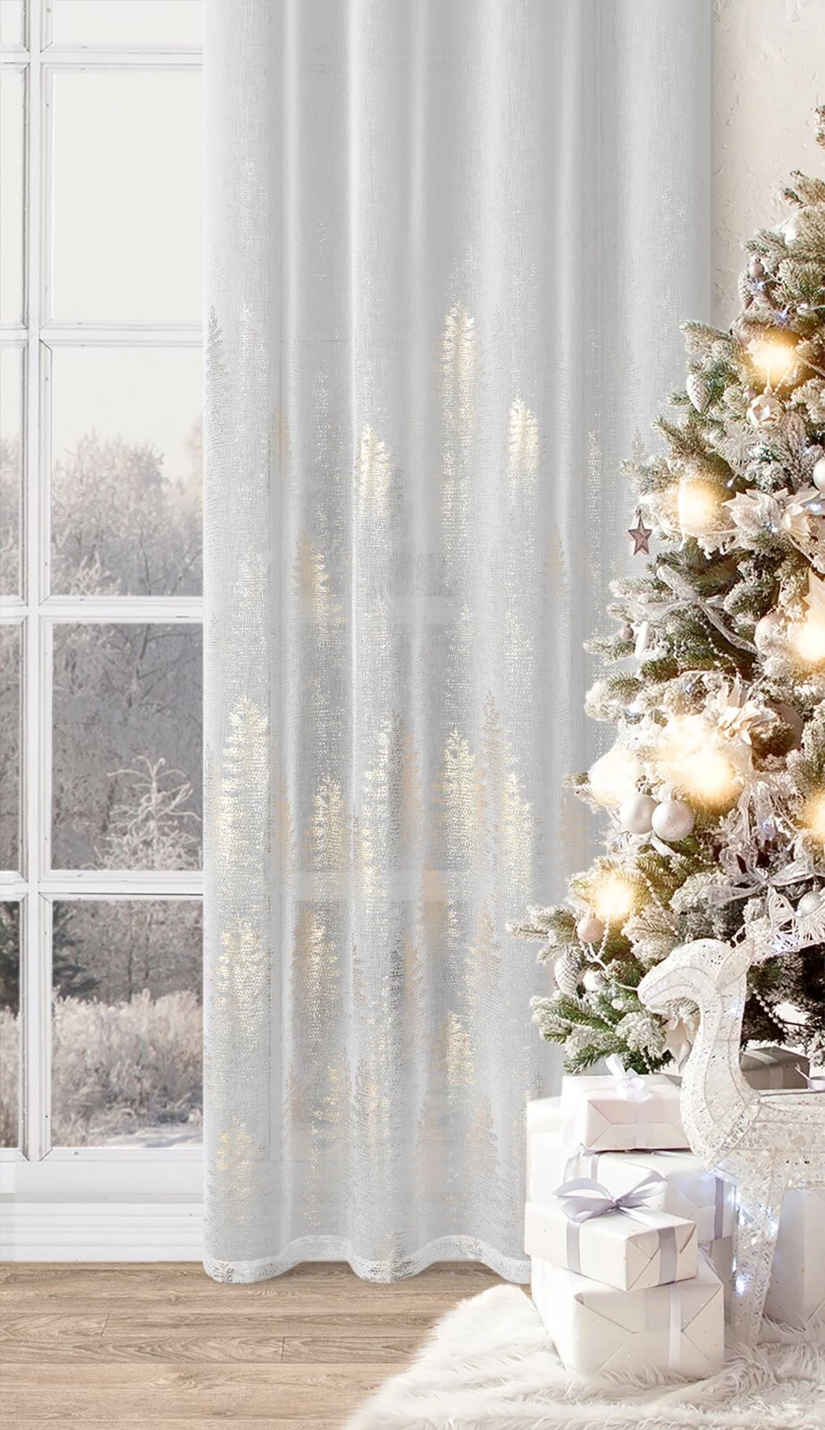 Firana gotowa z błyszczącym nadrukiem szerokość: 140 cm, długość: 250 cm, kolor: biały, Gramatura: 70 GSM, Skład: 100% poliester