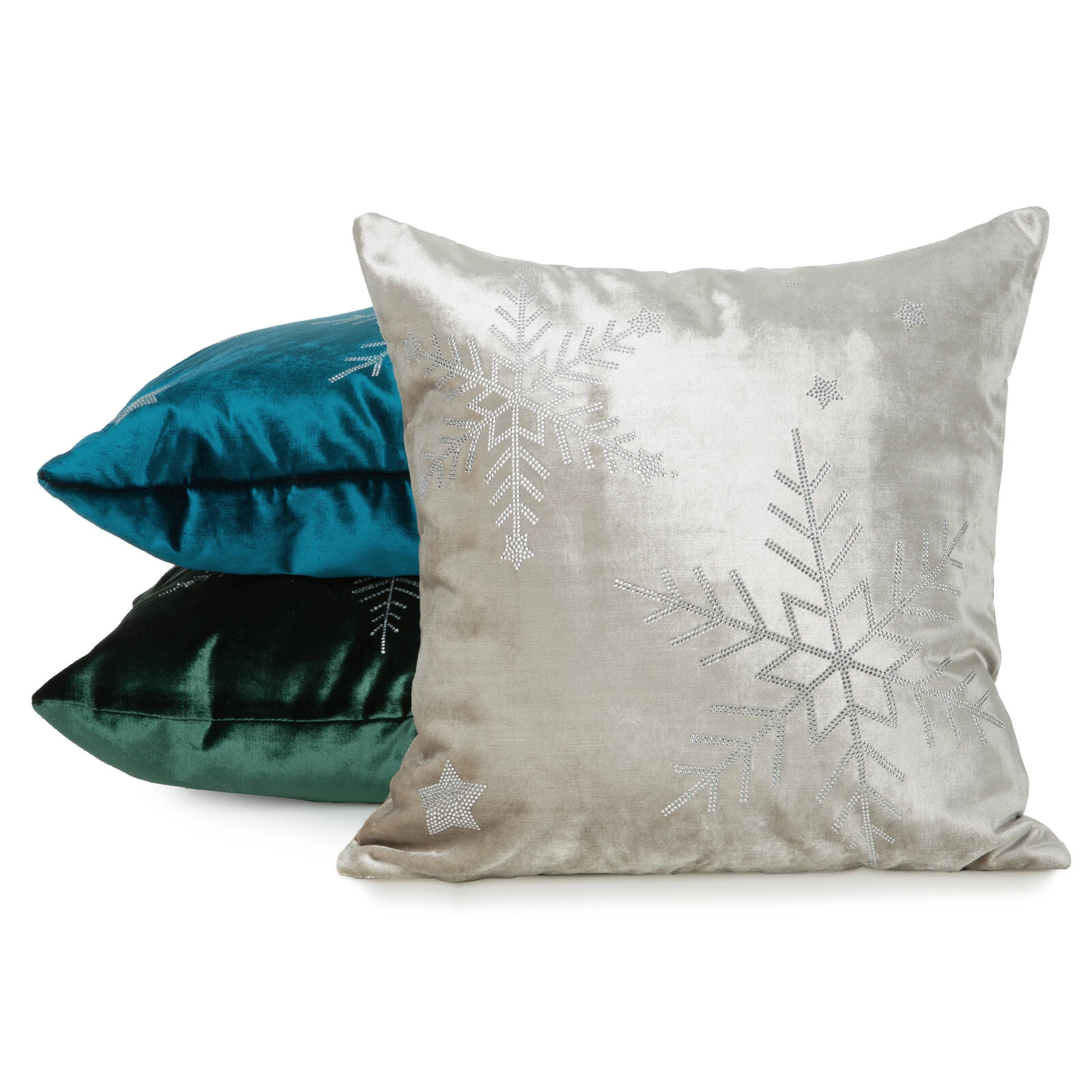 Świąteczna poszewka dekoracyjna z błyszczącym wzorem i ozdobną lamówką szerokość: 45 cm, długość: 45 cm, kolor: srebrny, Gramatura: 430 GSM, Skład: 100% poliester