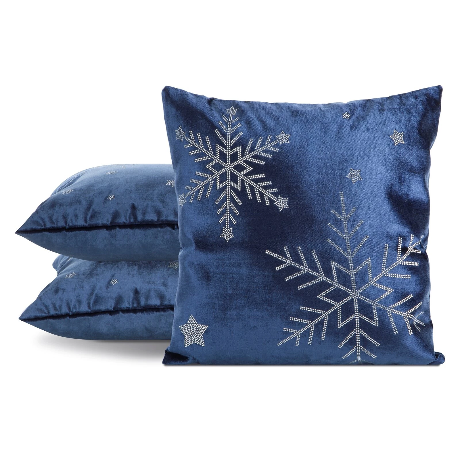 Poszewka dekoracyjna 45×45 cm – granatowy welwet w śnieżynki