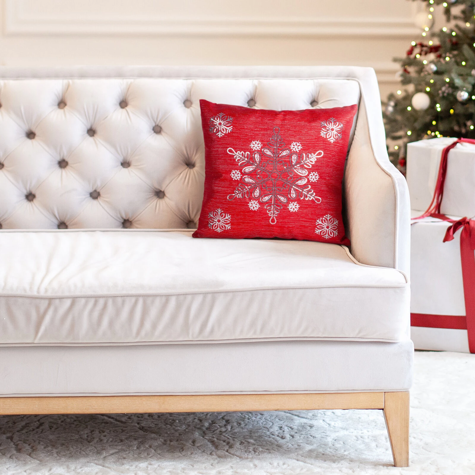 Poszewka świąteczna 45x45 cm – z haftem śnieżynek i błyszczącą nicią