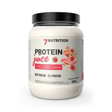 - 7Nutrition Protein Juice to innowacyjna odżywka białkowa na bazie hydrolizatu białka wołowego. Każda porcja dostarcza aż 27 g czystego, łatwo przyswajalnego białka, które wspiera regenerację mięśni, ich wzrost oraz utrzymanie beztłuszczowej masy ciała.