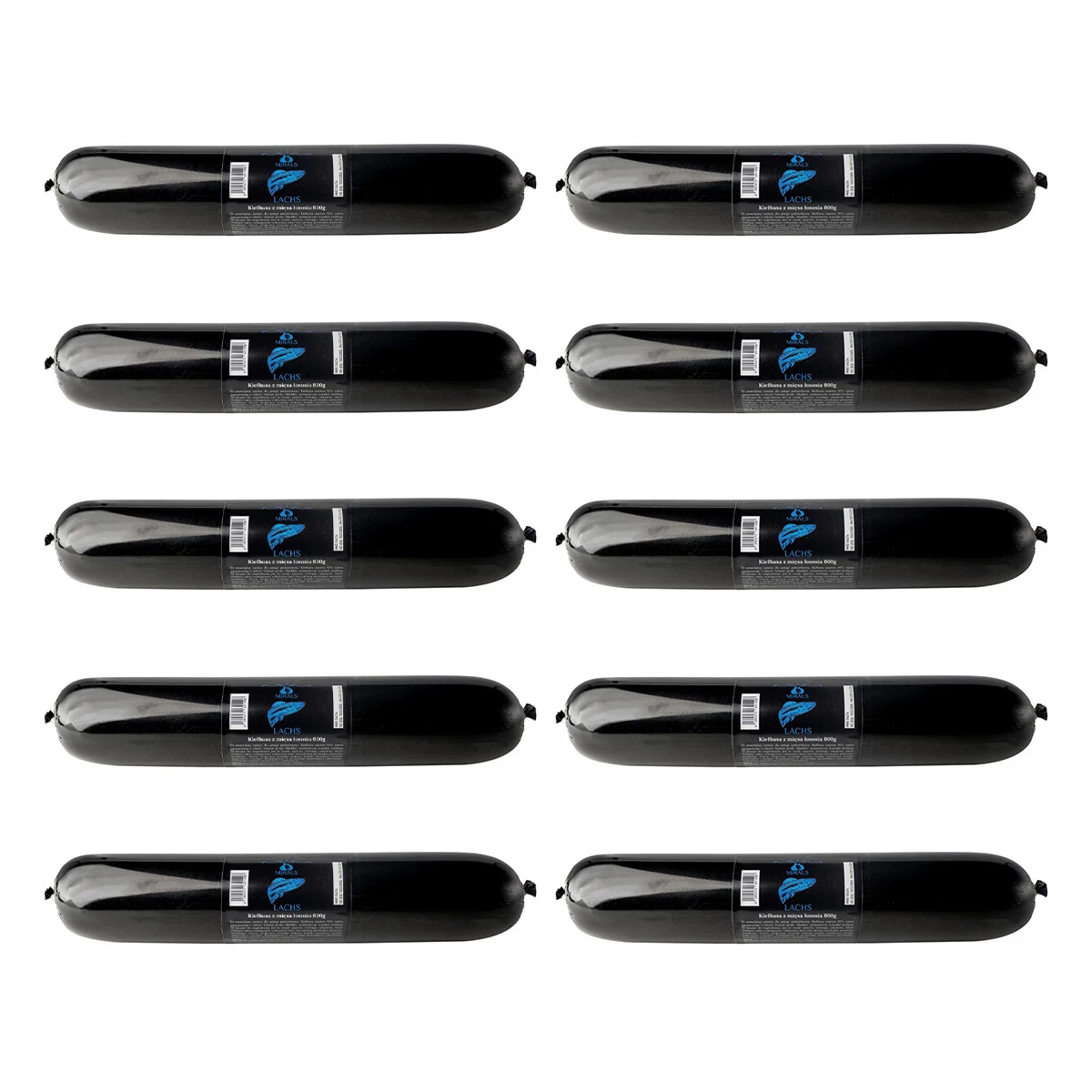 Zestaw 10x MIRALS Lachs - kiełbasa z mięsa łososia (800g)