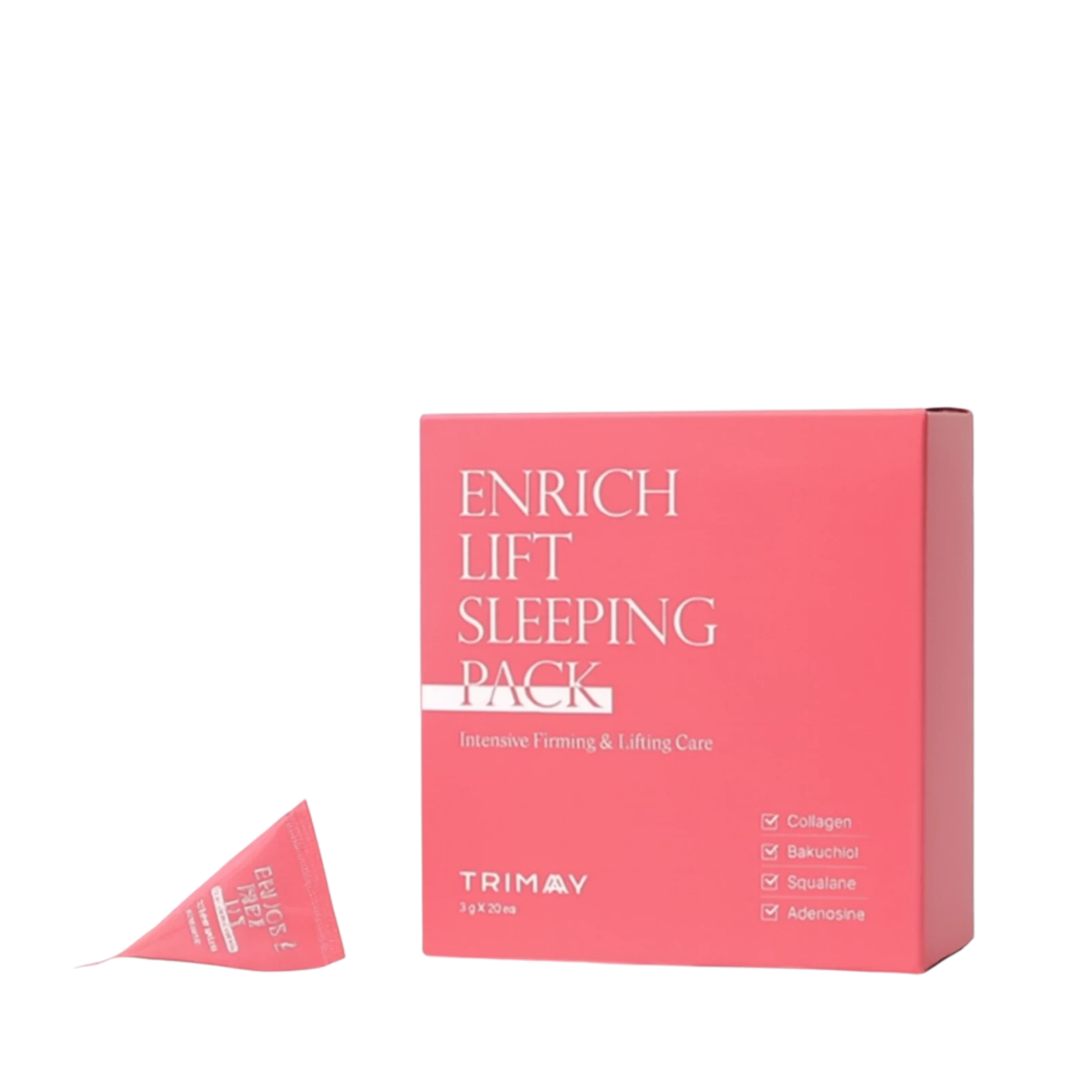 - Maska nocna Trimay Enrich Lift Sleeping Pack intensywnie nawilża i wygładza skórę podczas snu, wspierając jej elastyczność i promienny wygląd.