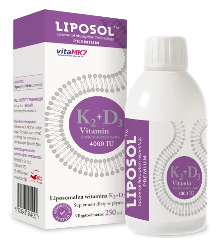 - Liposomalna Witamina K2 + D3 to nowoczesny suplement diety stworzony w oparciu o technologię Liposol™ Premium Absorption Technology, gwarantującą wyjątkowo wysoką biodostępność składników.