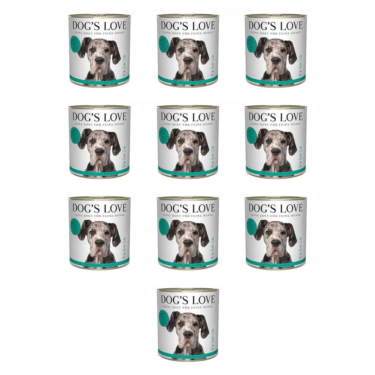 10 x Zestaw 10x DOG'S LOVE Ente - kaczka z topinamburem i marchewką (800g)Cena: 27,76 zł / szt.