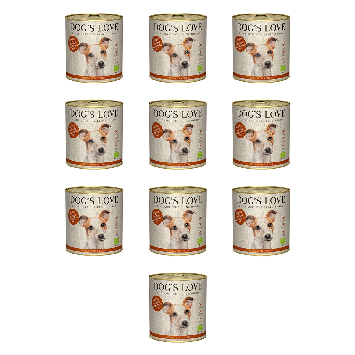 Zestaw 10x DOG'S LOVE BIO RIND - ekologiczna wołowina z ryżem, cukinią i jabłkiem (800g)