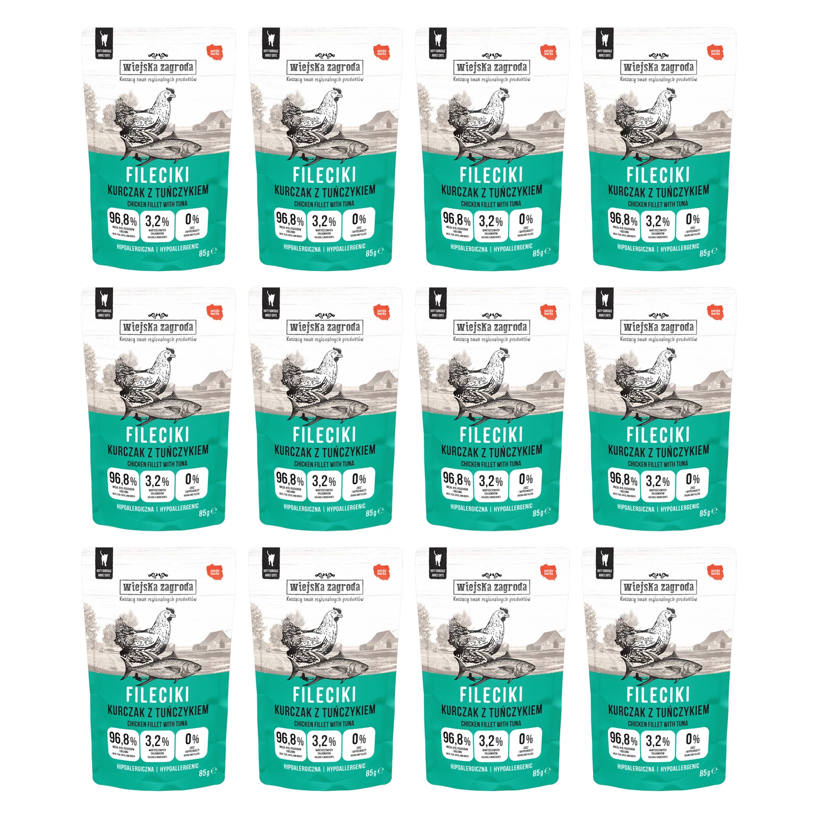 Zestaw 12x Wiejska Zagroda Fileciki Kurczak z tuńczykiem - bezzbożowa mokra karma dla kota - 85g