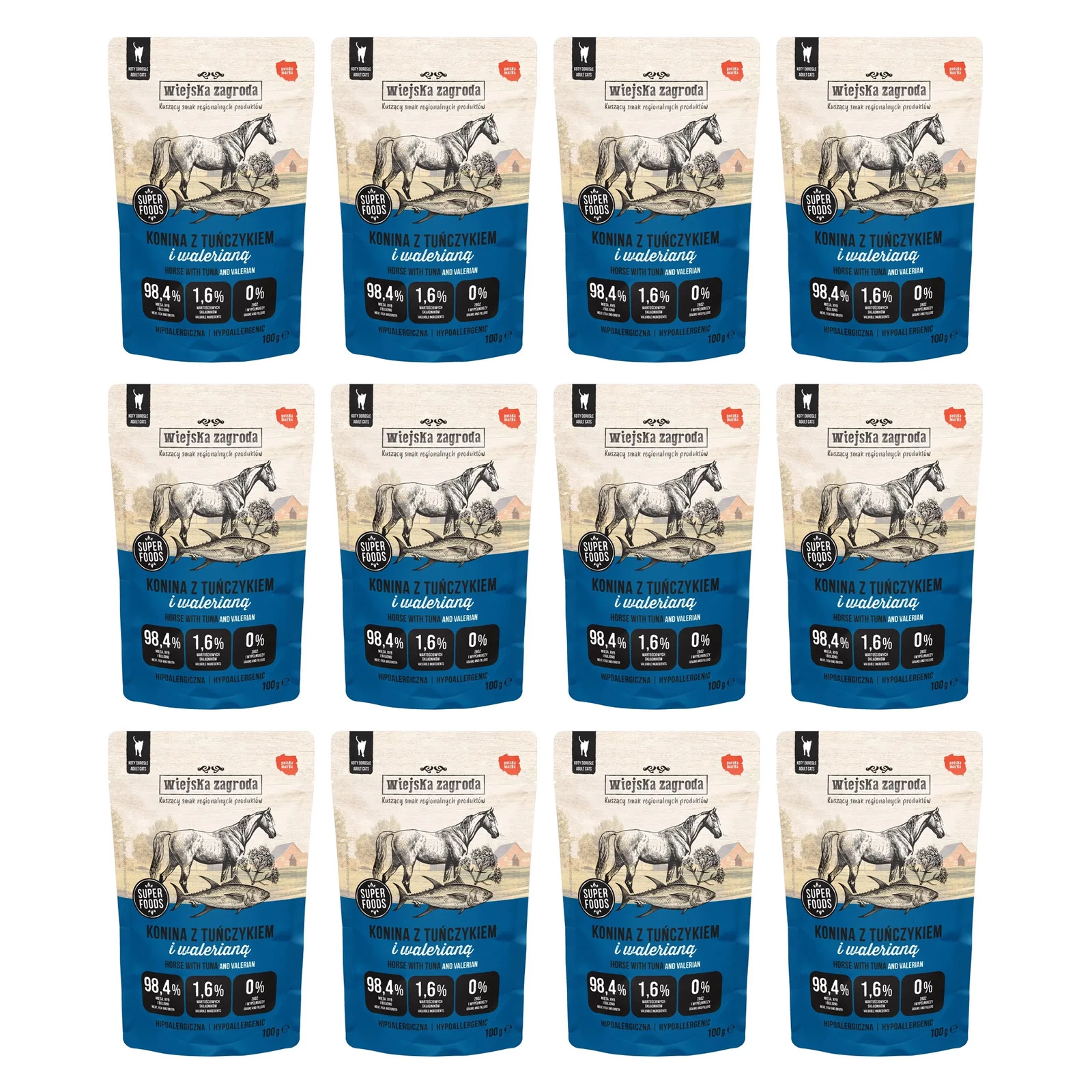 Zestaw 12x Wiejska Zagroda Konina z tuńczykiem i walerianą - mokra karma dla kota -100g