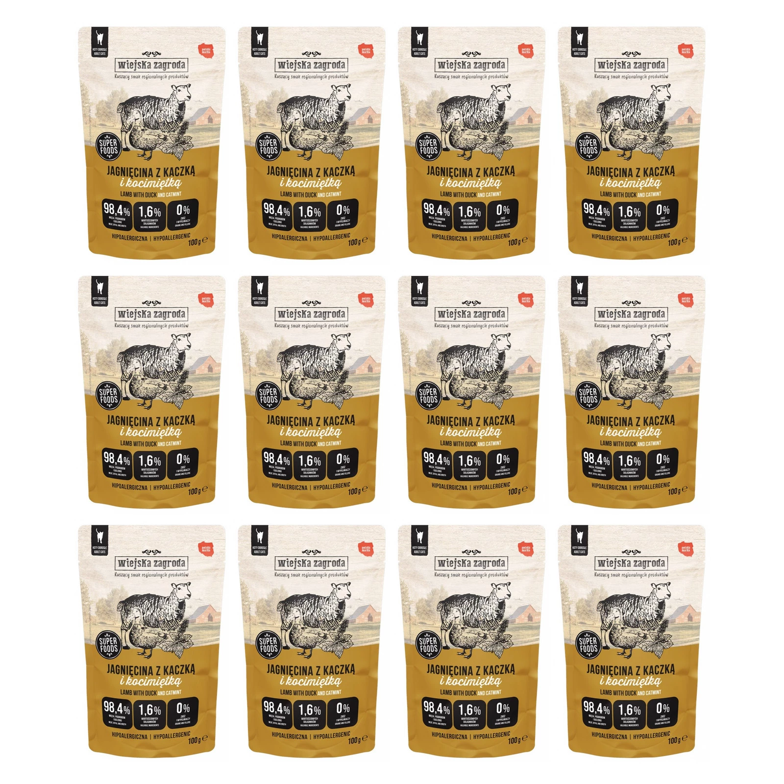 Zestaw 12x Wiejska Zagroda Jagnięcina z kaczką i kocimiętką - mokra karma dla kota - 100g