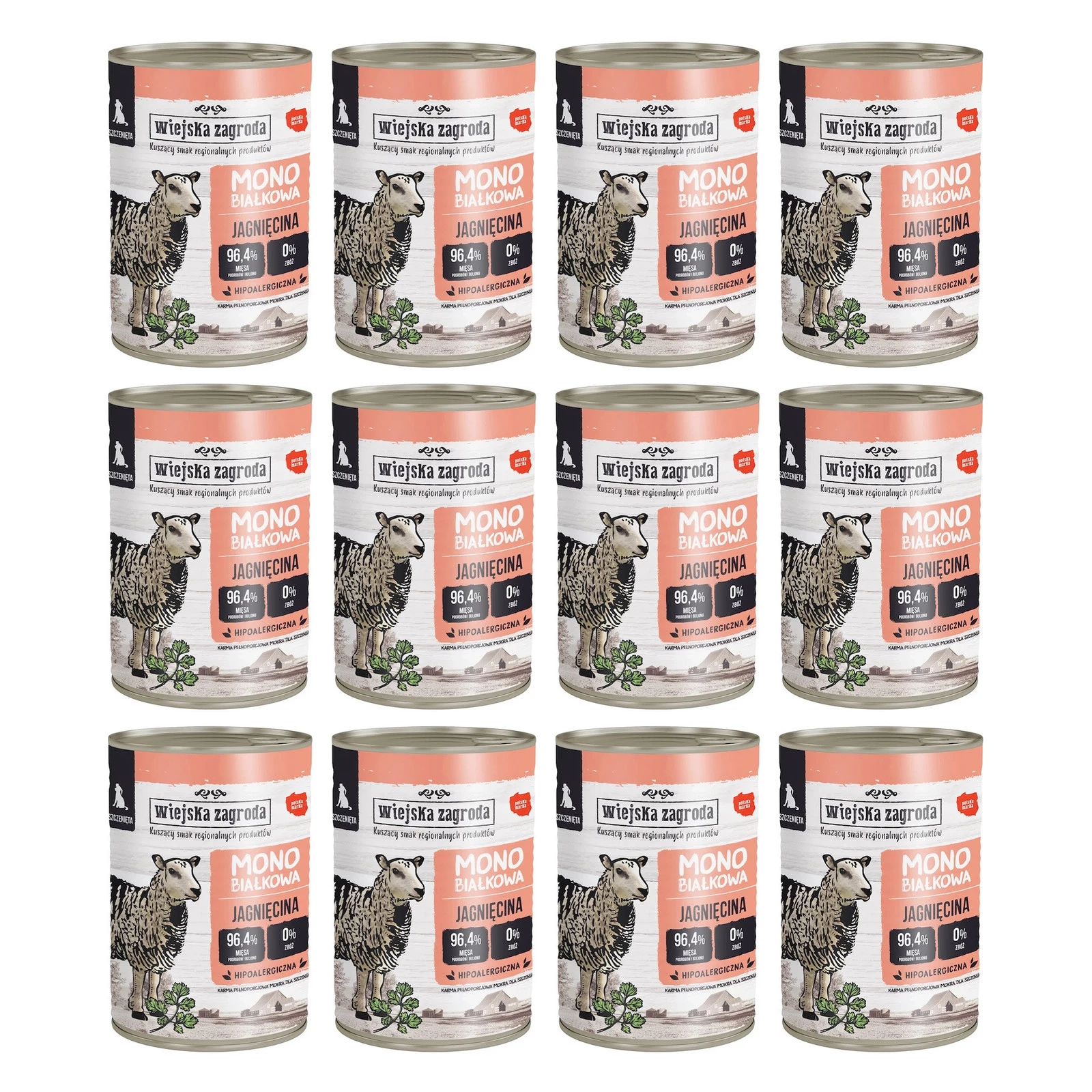 Zestaw 12x Wiejska Zagroda Monobiałkowa Jagnięcina - mokra dla psa szczeniaka - 400g