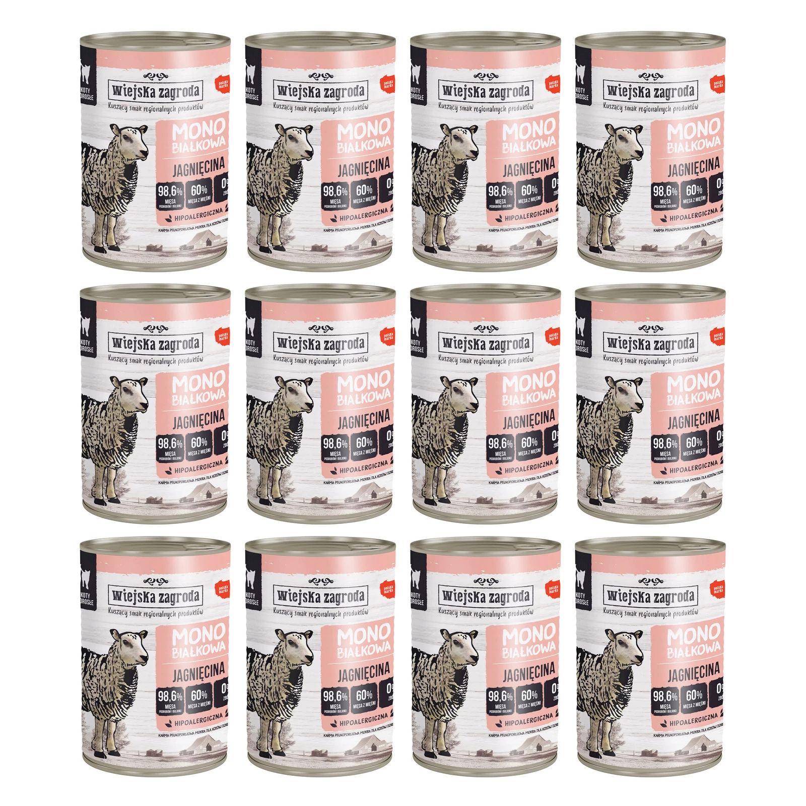 Zestaw 12x Wiejska Zagroda Monobiałkowa Jagnięcina - karma mokra dla kota - 400g
