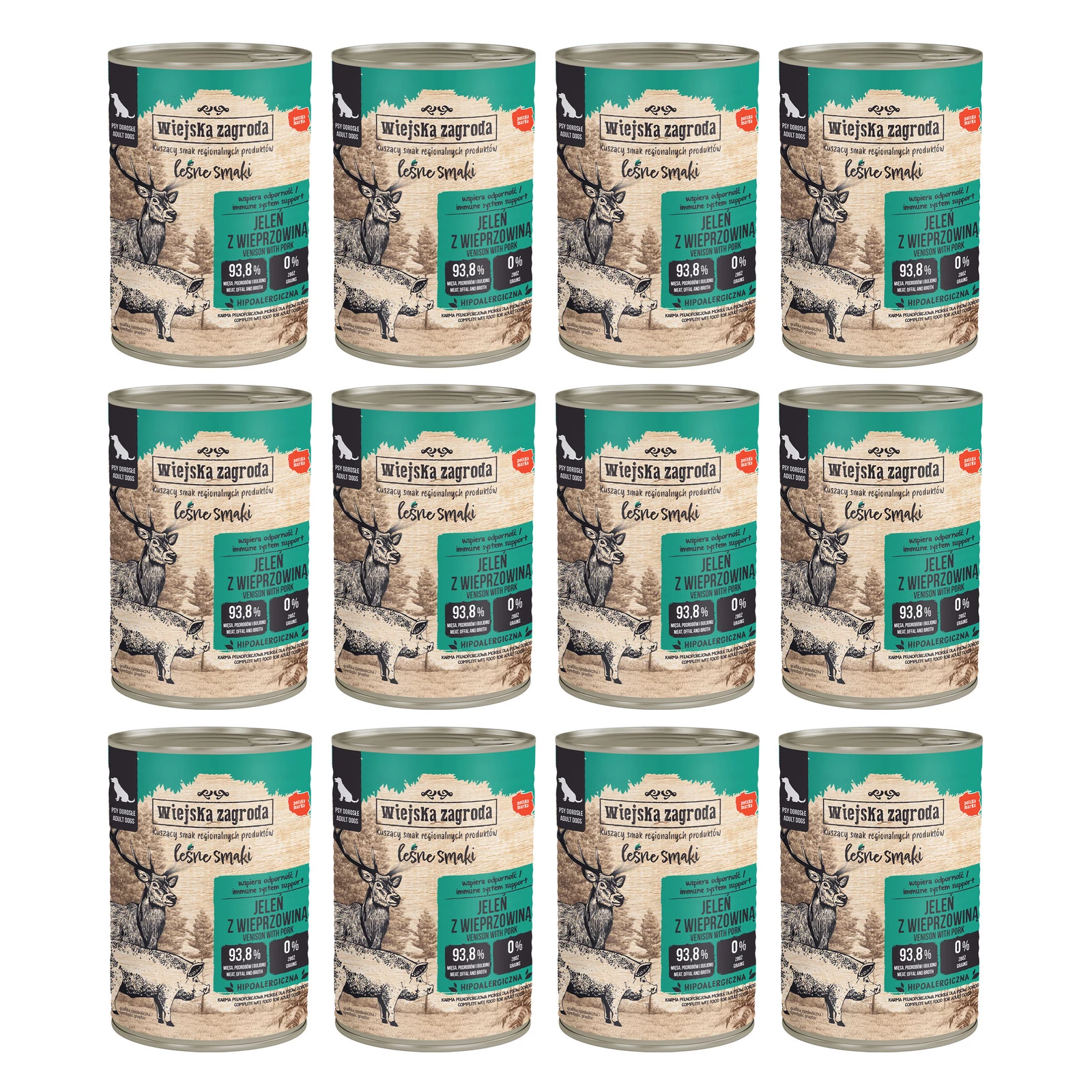 Zestaw 12x Wiejska Zagroda Leśne smaki Jeleń z wieprzowiną - mokra karma dla psa - 400g