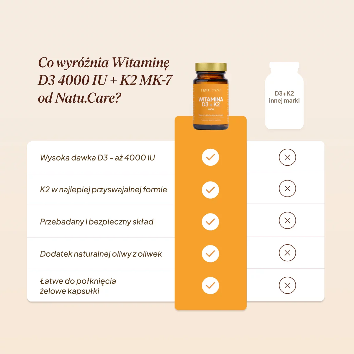 - Witamina D3 + K2 MK-7 to synergiczny duet wspierający odporność, zdrowe kości i równowagę hormonalną.