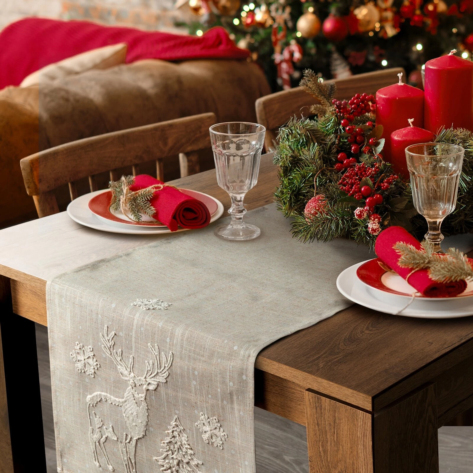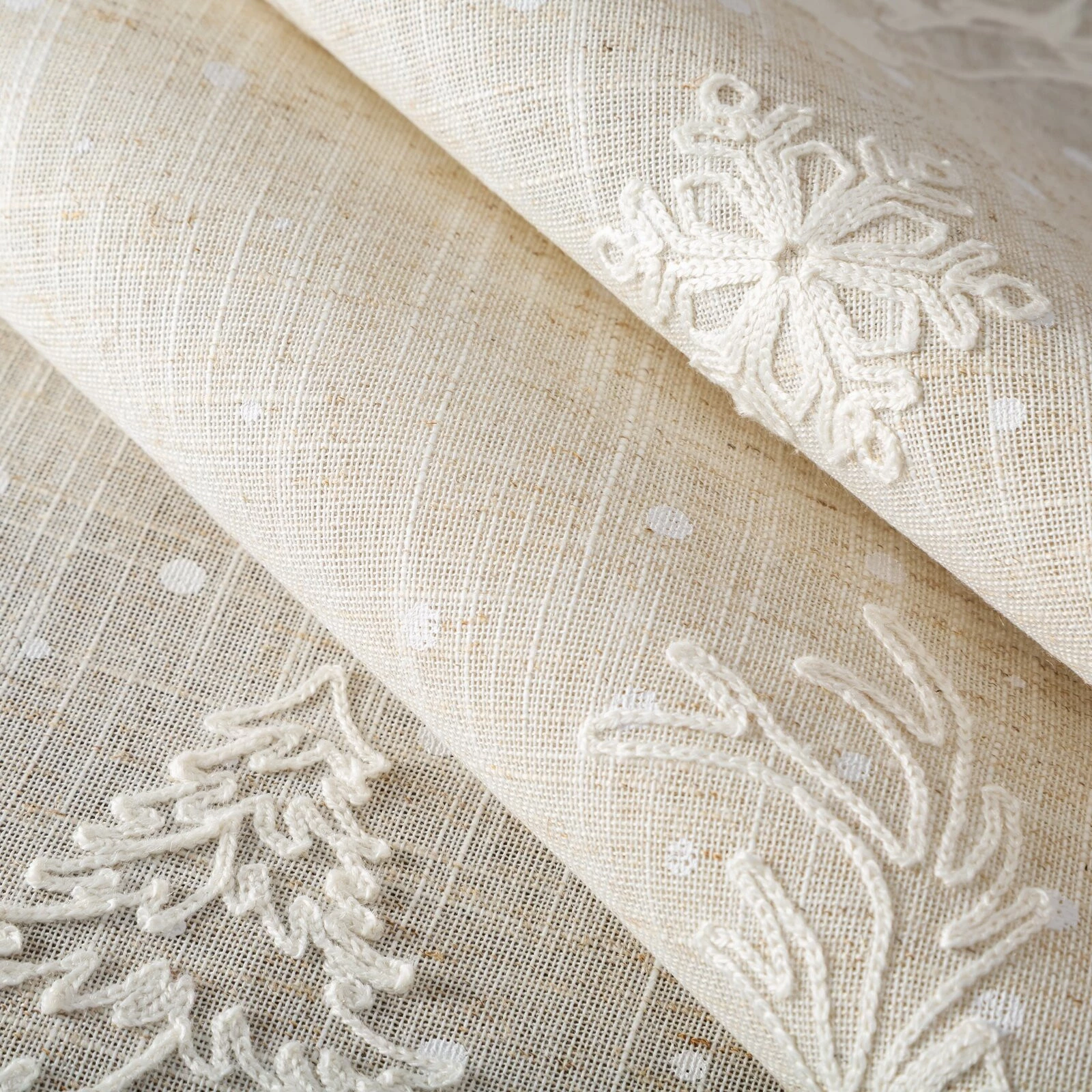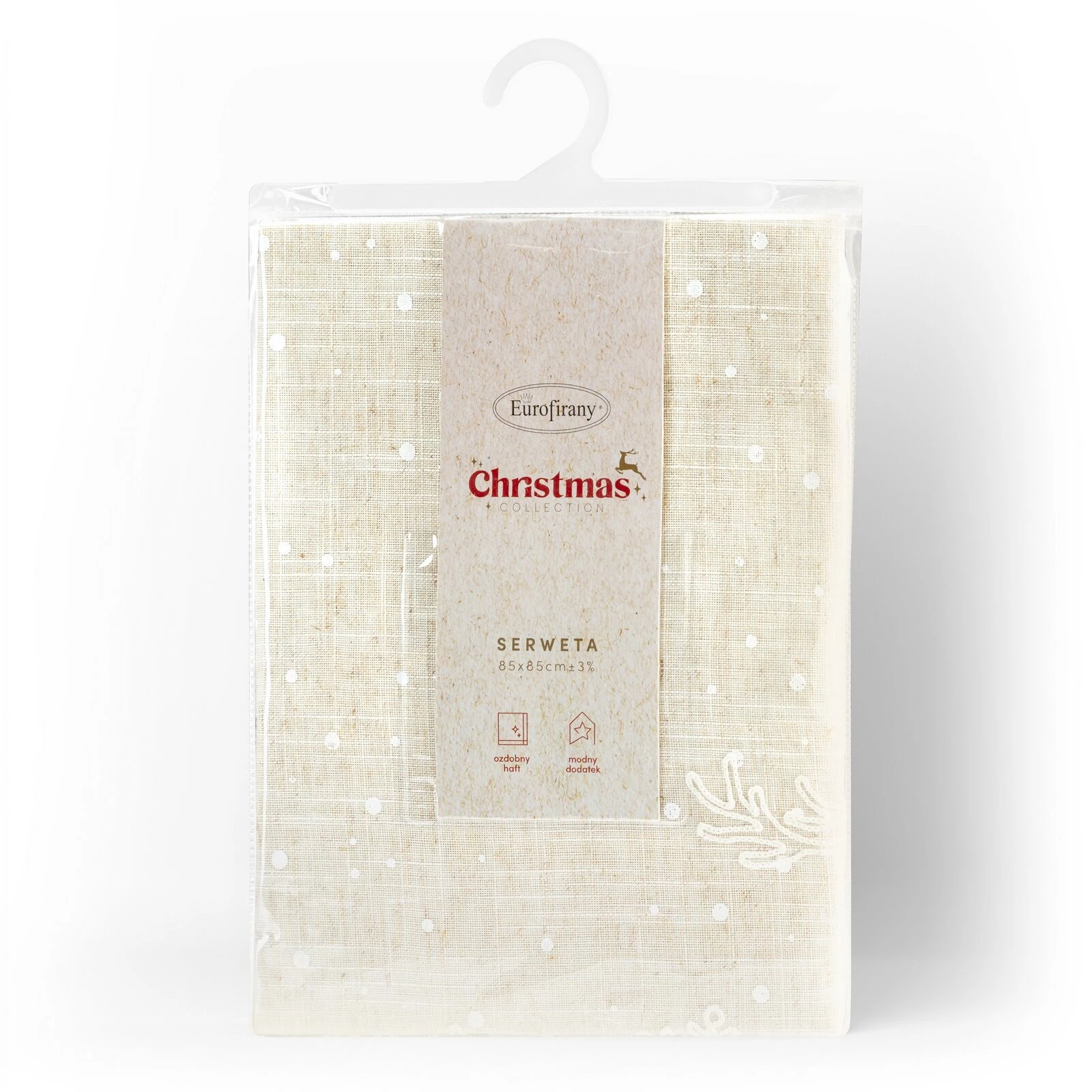 świąteczny bieżnik dekoracyjny szerokość: 85 cm, długość: 85 cm, kolor: beżowy, Gramatura: 200 GSM, Skład: 80% poliester, 20% len