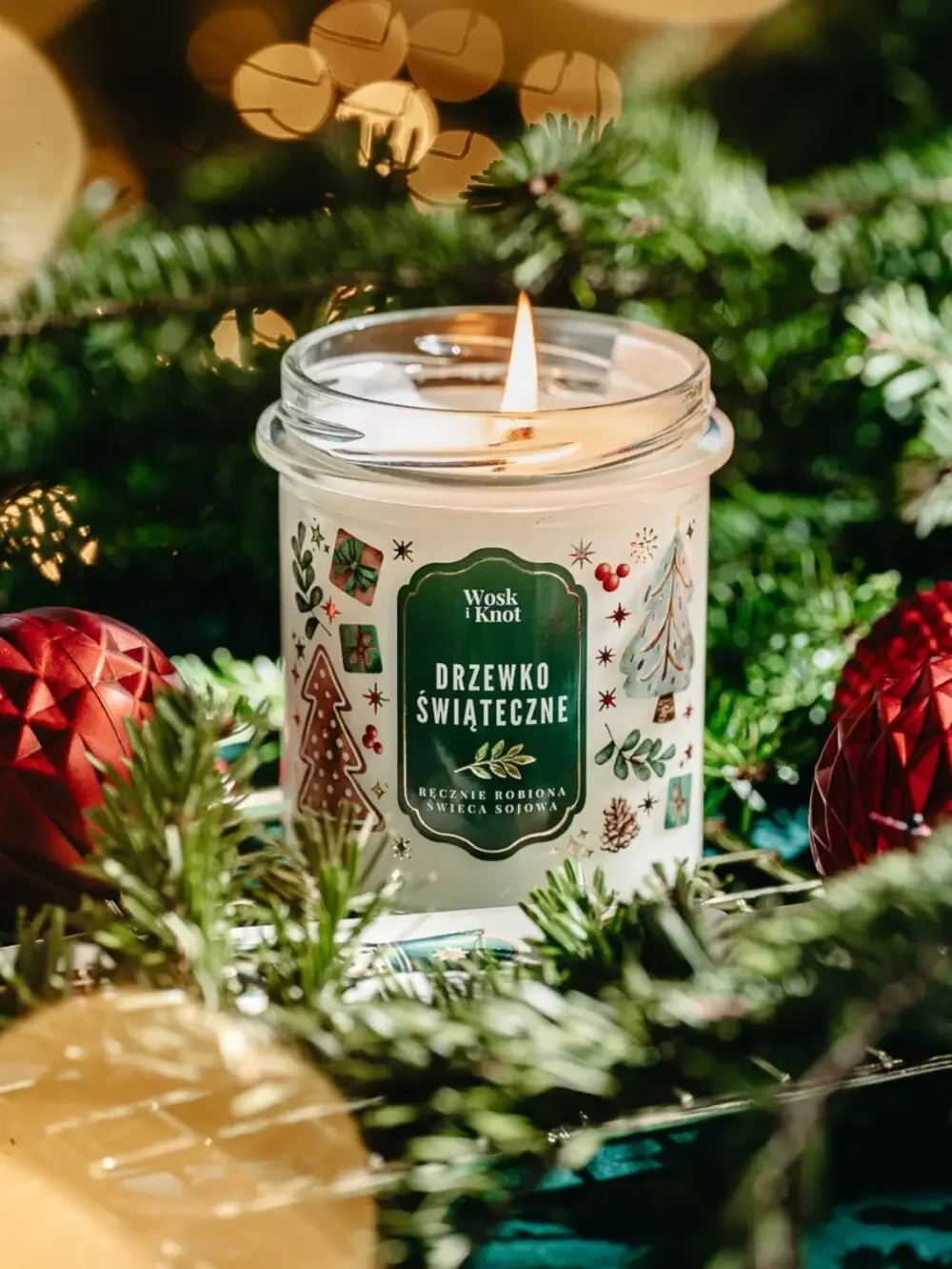 - Świece sojowe Wosk i Knot to połączenie naturalnych składników, rzemieślniczej precyzji i wyjątkowych aromatów. Drzewko Świąteczne przenosi Cię na zimowy jarmark, gdzie zapach świeżo ściętych choinek miesza się z orzeźwiającą nutą cytrusów i leśną głębią.