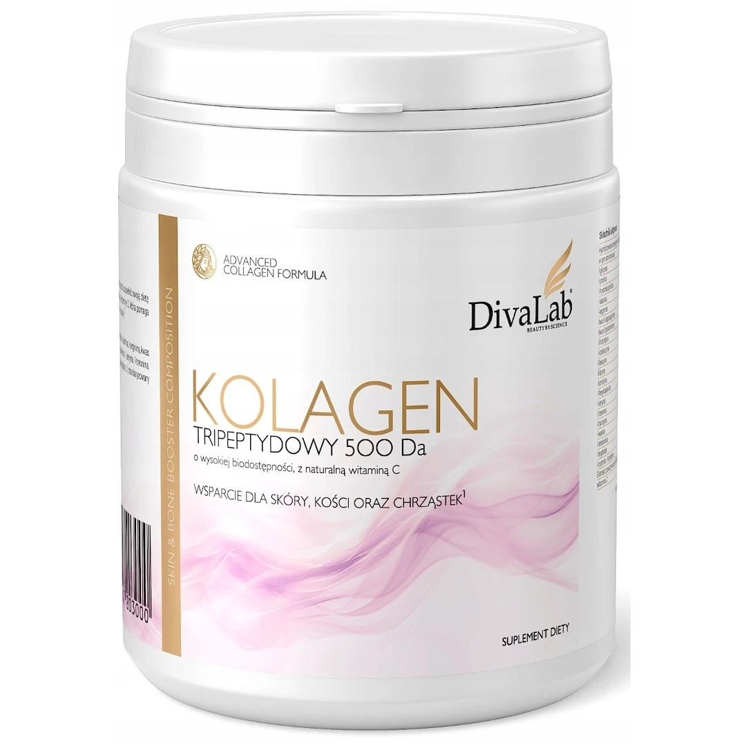 - DivaLab Active Kolagen Tripeptydy rybie 500Da chondroityna glukozamina 250 g to suplement diety, który łączy zaawansowaną formułę kolagenu rybiego o ultraniskiej masie cząsteczkowej 500 Da z dodatkiem glukozaminy, chondroityny, kwasu hialuronowego
