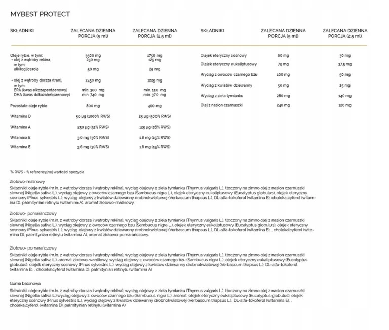 - MyBestProtect to zaawansowany suplement diety łączący 11 składników aktywnych zawieszonych w wysokiej jakości olejach. Stworzony dla osób, które chcą w prosty i skuteczny sposób wesprzeć swoją odporność oraz zadbać o codzienne funkcjonowanie organizmu.