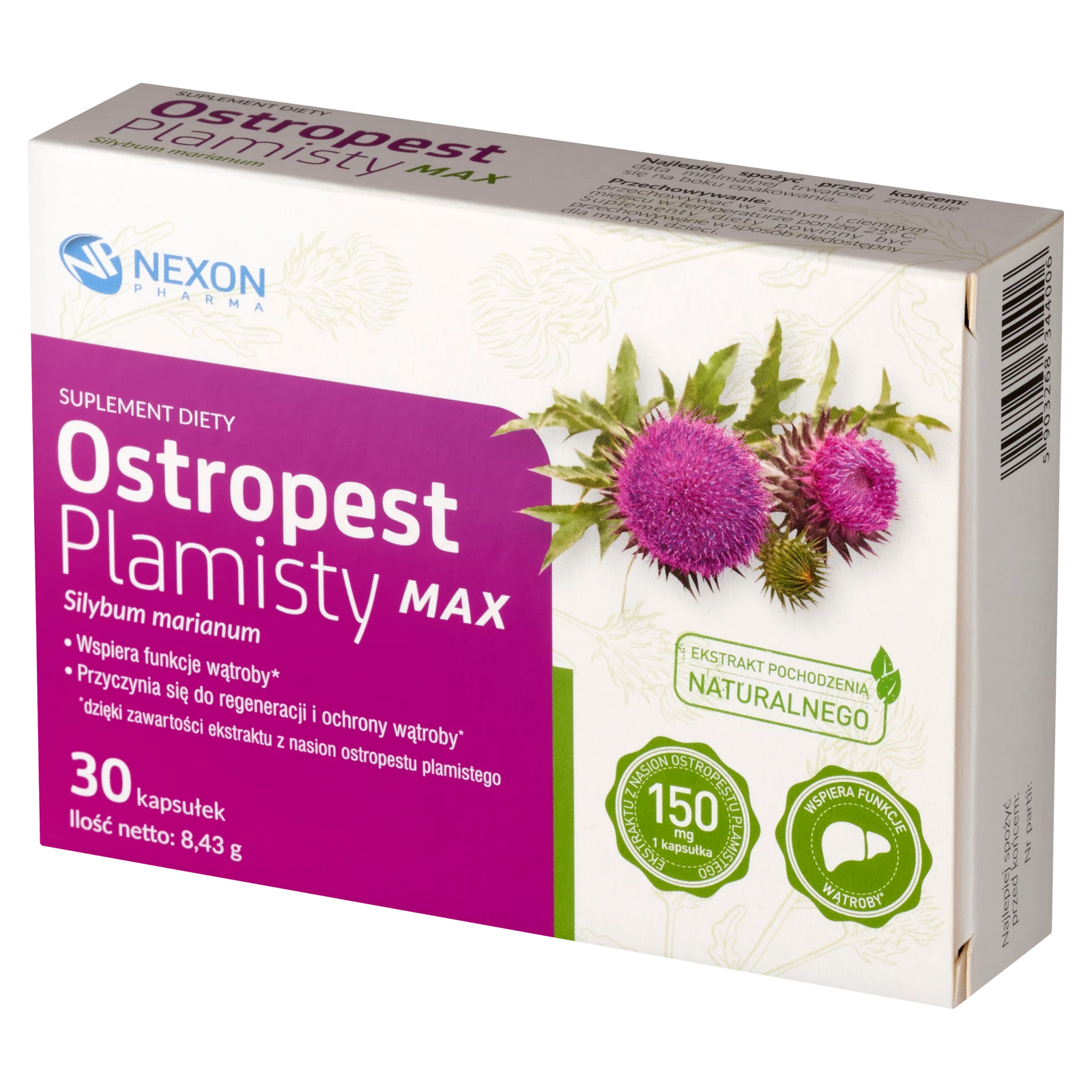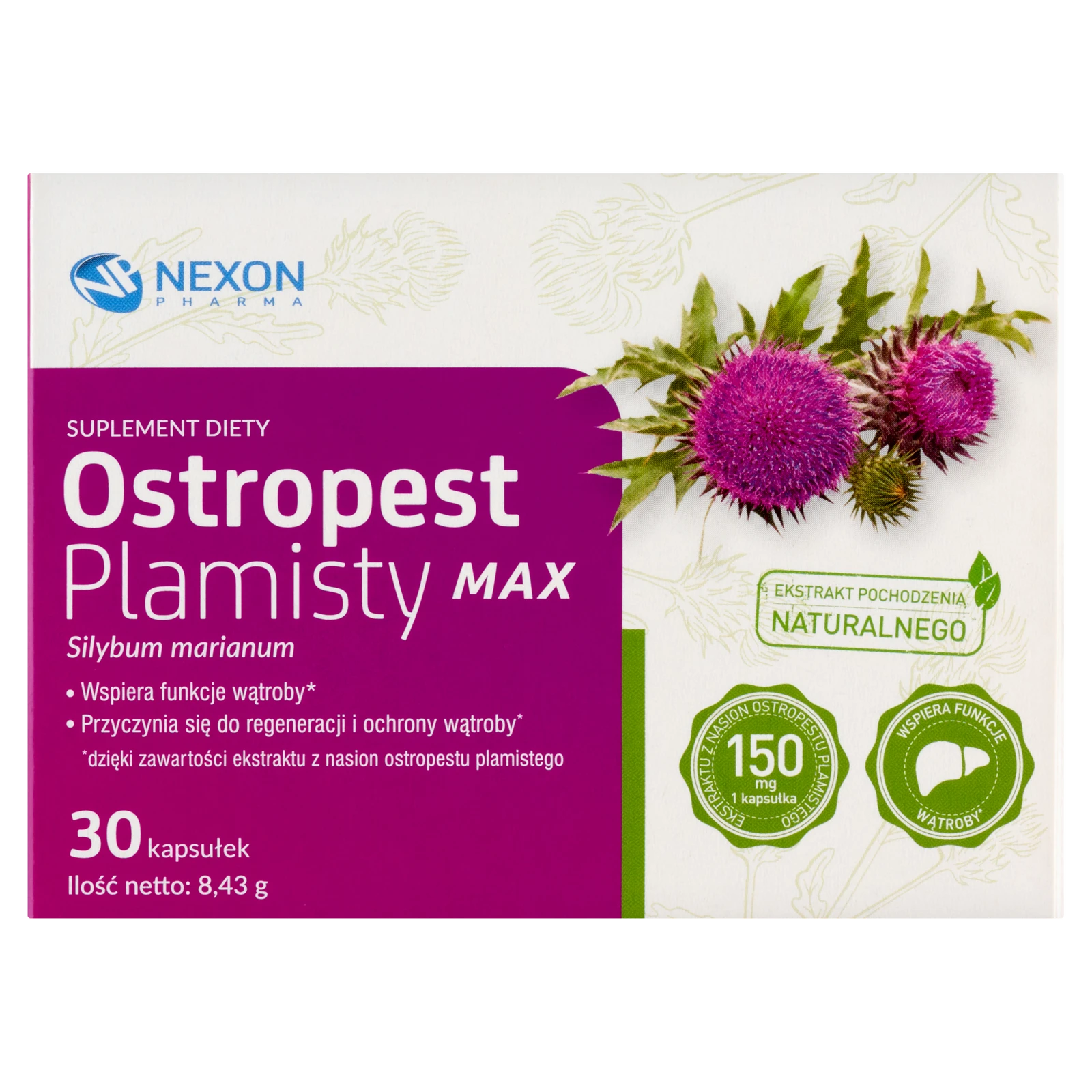 - Ostropest Plamisty MAX to suplement diety zawierający wysokiej jakości ekstrakt z nasion ostropestu plamistego. Dzięki obecności sylimaryny wspiera regenerację i ochronę komórek wątroby, wspomaga jej prawidłowe funkcjonowanie.