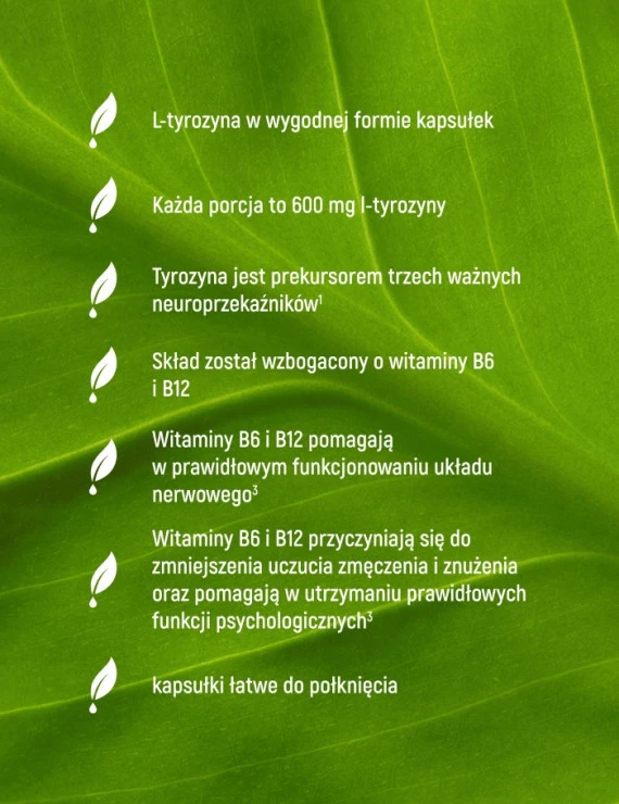 - ✔️ Prekursor neuroprzekaźników: dopaminy, noradrenaliny, adrenaliny [2]