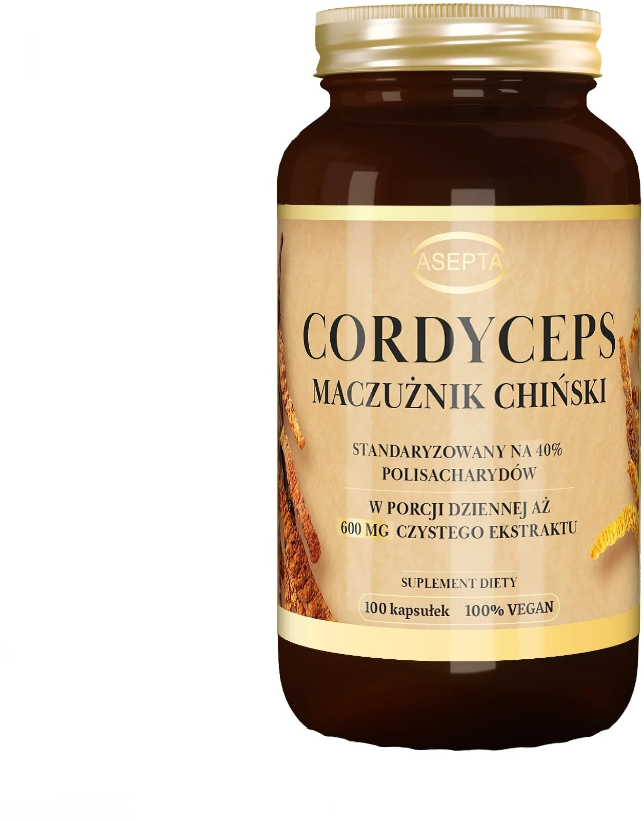 - Asepta Cordyceps to suplement diety zawierający wysokiej jakości ekstrakt z grzyba Cordyceps sinensis (Maczużnika Chińskiego) w dużej dawce 600 mg na kapsułkę.