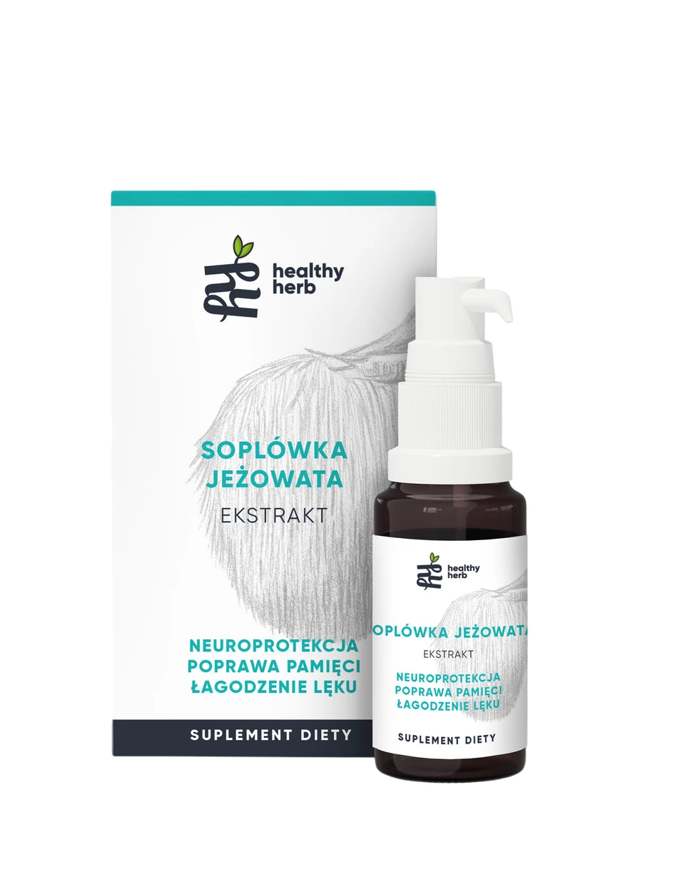 - Ekstrakt z grzybów Soplówki Jeżowatej (Hericium erinaceus) w kroplach to skoncentrowana forma owocników soplówki jeżowatej, której przyjmowanie może przynieść korzyści związane ze z poprawą pamięci i zapamiętywaniem, skupieniem