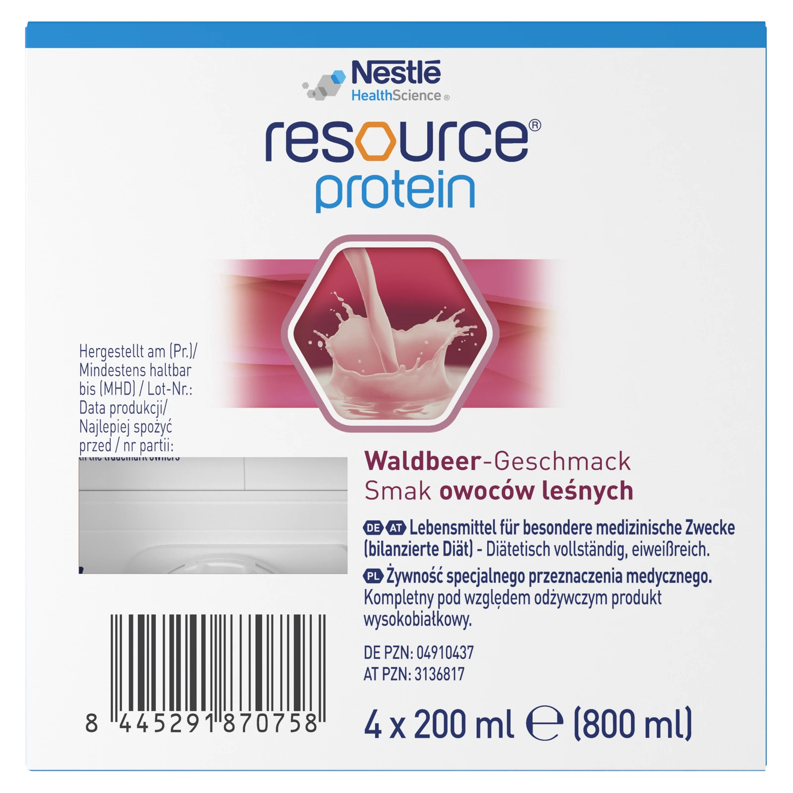 - Dietetyczny środek spożywczy specjalnego przeznaczenia medycznego. RESOURCE Protein to kompletna pod względem odżywczym, wysokobiałkowa dieta w płynie dla osób ze zwiększonym zapotrzebowaniem na białko i energię.