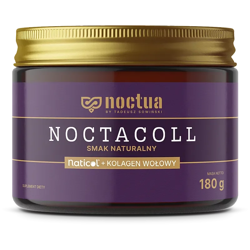- Noctua Noctacoll to zaawansowany suplement diety łączący dwa rodzaje peptydów kolagenowych: Naticol® – kolagen rybi (morski) oraz Colpropur D® – kolagen wołowy.