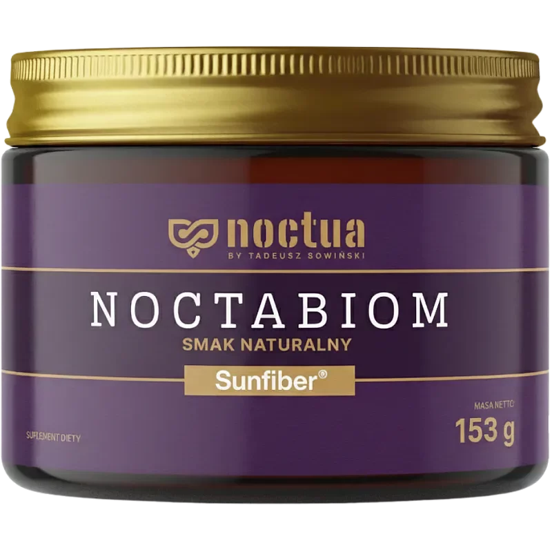 - Noctua Noctabiom to suplement diety zawierający połączenie dwóch błonników rozpuszczalnych: PHGG Sunfiber® (częściowo hydrolizowana guma guar) oraz arabinogalaktanu z modrzewia amerykańskiego.
