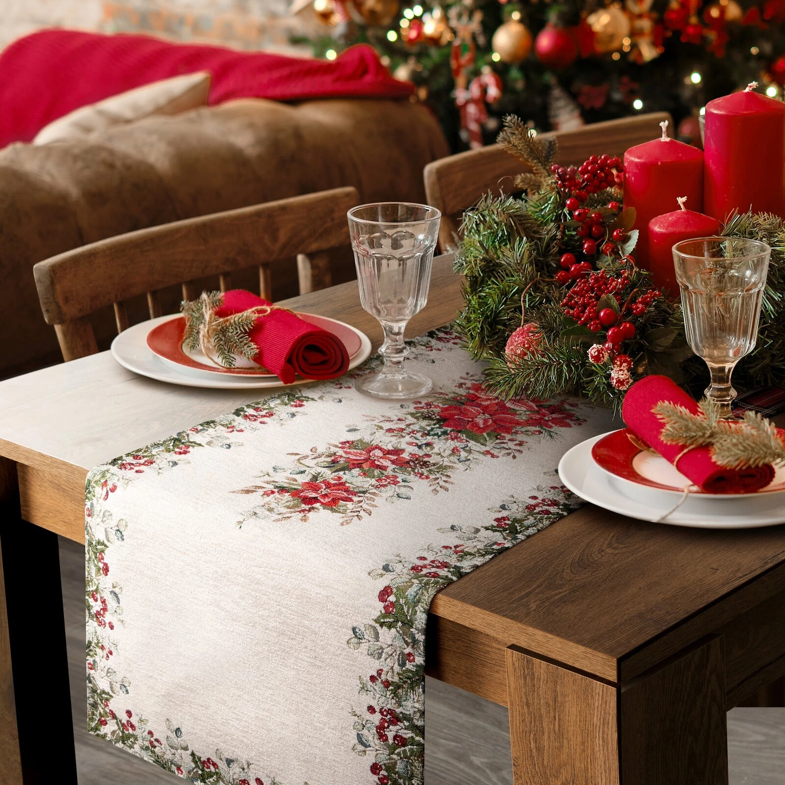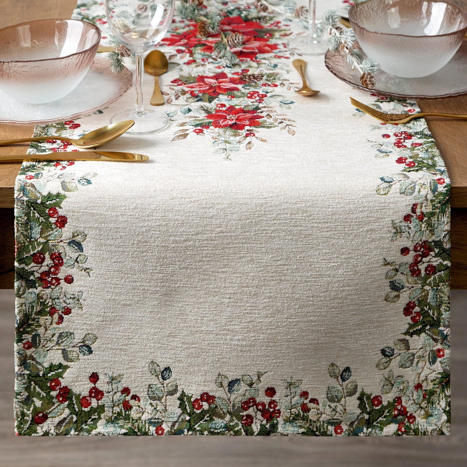 Gobelinowy bieżnik dekoracyjny szerokość: 45 cm, długość: 140 cm, kolor: naturalny, Gramatura: 450 GSM, Skład: 85% poliester, 15% bawełna