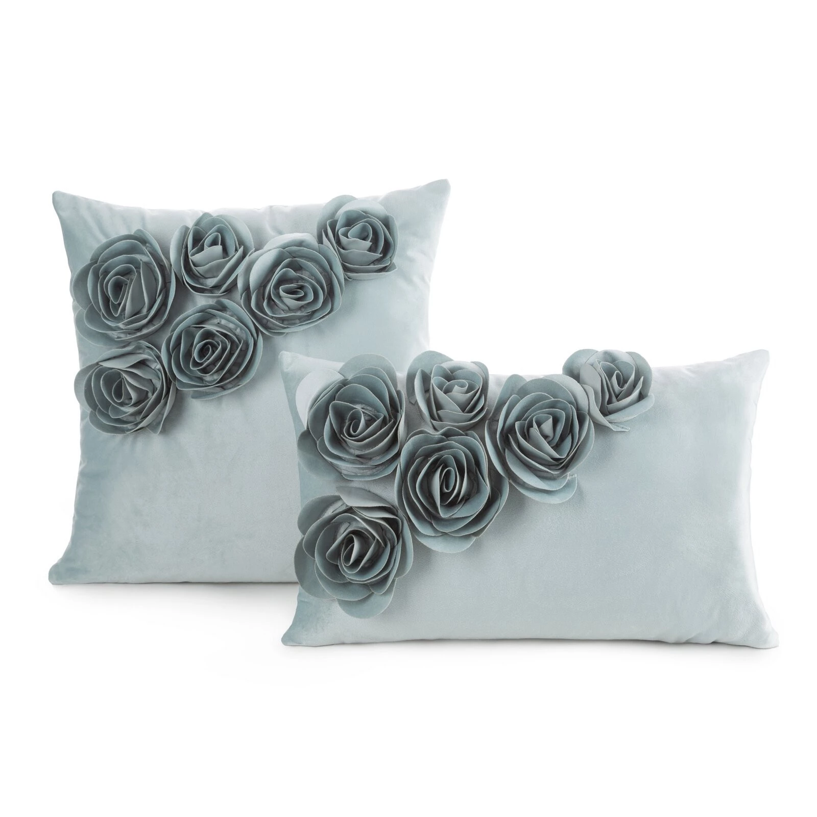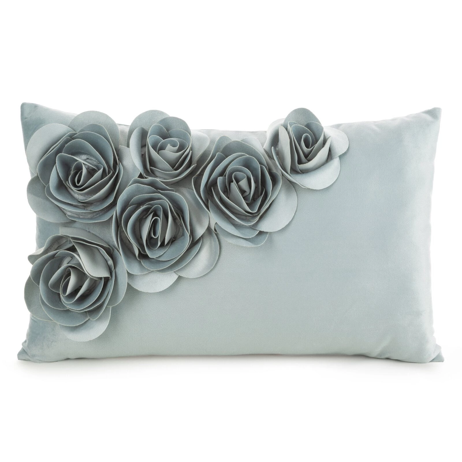 Welwetowa poszewka dekoracyjna z aplikacją w kształcie róż szerokość: 30 cm, długość: 50 cm, kolor: miętowy, Gramatura: 200 GSM, Skład: 100% poliester