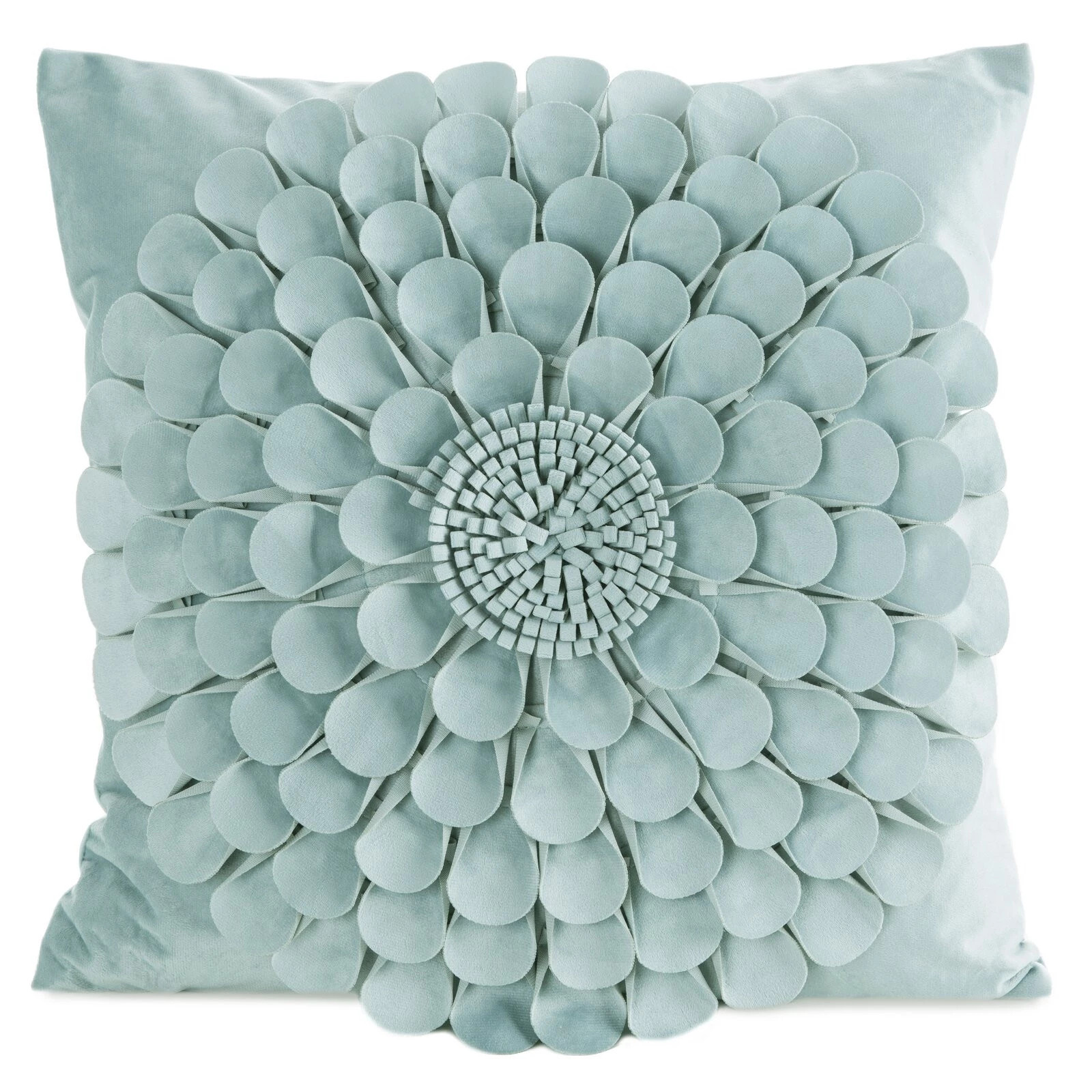 Welwetowa poszewka dekoracyjna z trójwymiarowym motywem kwiatu szerokość: 45 cm, długość: 45 cm, kolor: miętowy, Gramatura: 200 GSM, Skład: 100% poliester