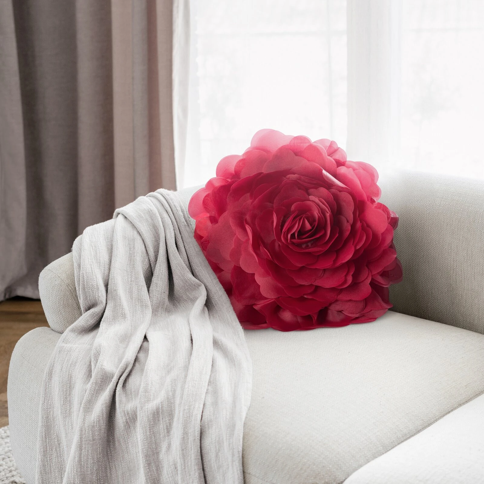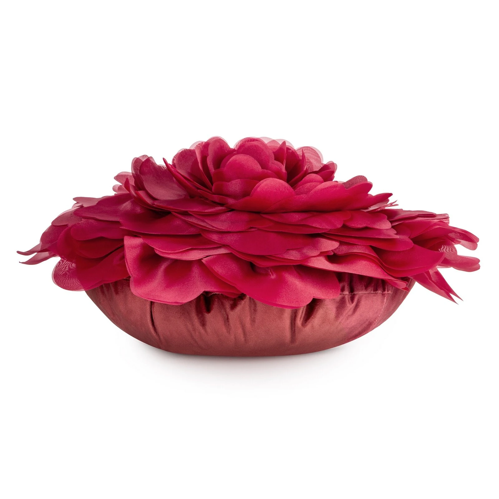 Poszewka dekoracyjna z trójwymiarowym motywem kwiatu kolor: bordowy, Skład: 100% poliester