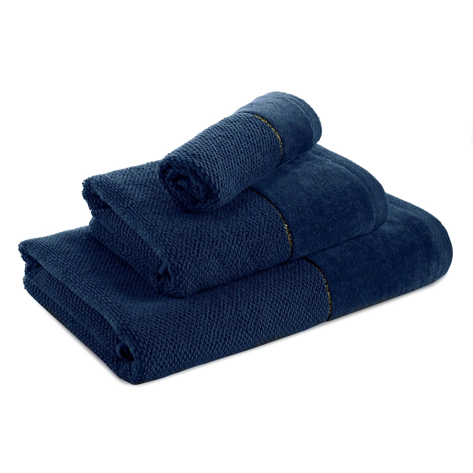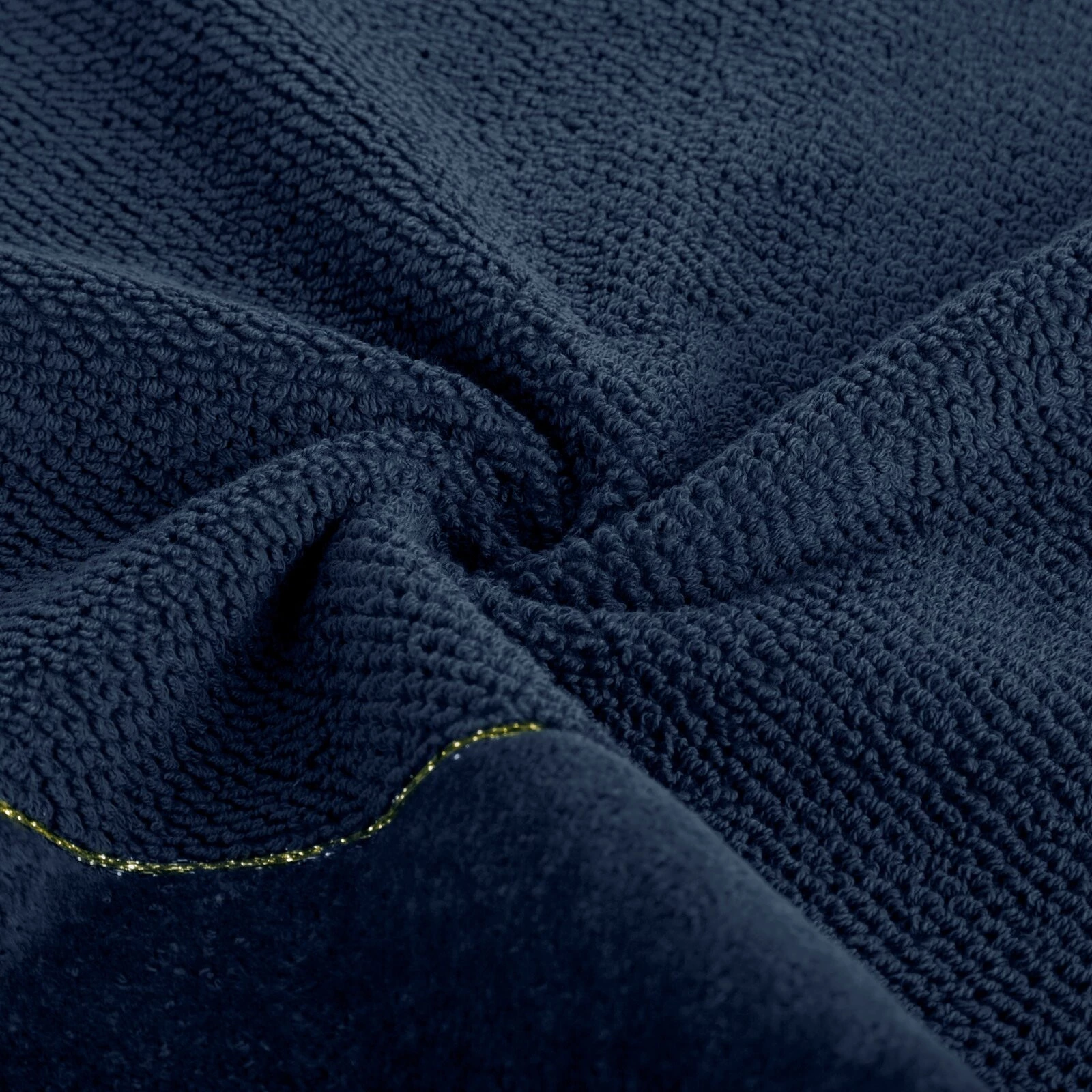 Ręcznik bawełniany z welurową bordiurą i błyszczącą nicią szerokość: 30 cm, długość: 50 cm, kolor: granatowy, Gramatura: 550 GSM, Skład: 100% bawełna; część ozdobna: 97% bawełna, 3% poliester