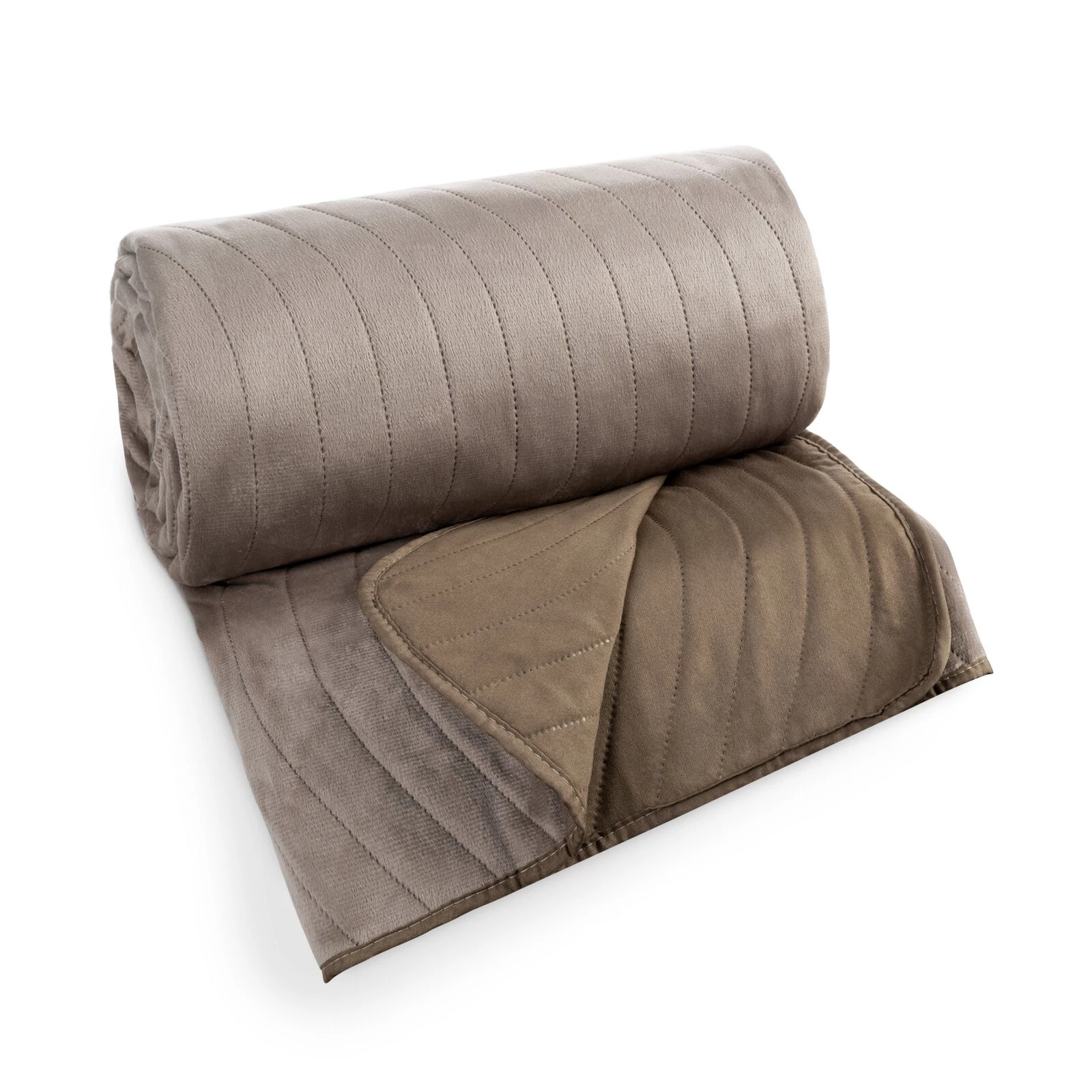 Narzuta welurowa wykonana metodą hot press szerokość: 200 cm, długość: 220 cm, kolor: beżowy, Gramatura: 315 GSM, Skład: 100% poliester