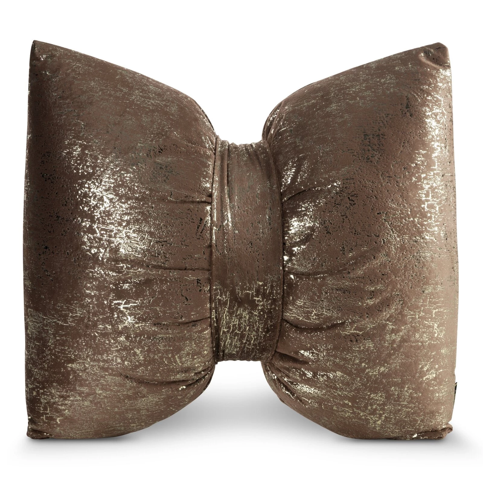 Welwetowa poduszka w kształcie kokardy z błyszczącym nadrukiem szerokość: 45 cm, długość: 55 cm, kolor: brązowy, Gramatura: 240 GSM, Skład: 100% poliester