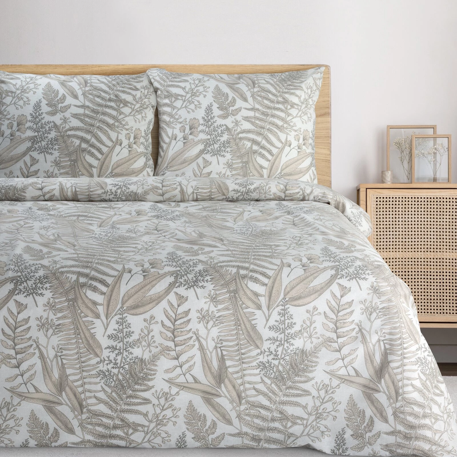 Komplet pościeli bawełnianej z nadrukiem. szerokość: 160 cm, długość: 200 cm, kolor: beżowy, Gramatura: 105 GSM, Skład: 100% bawełna