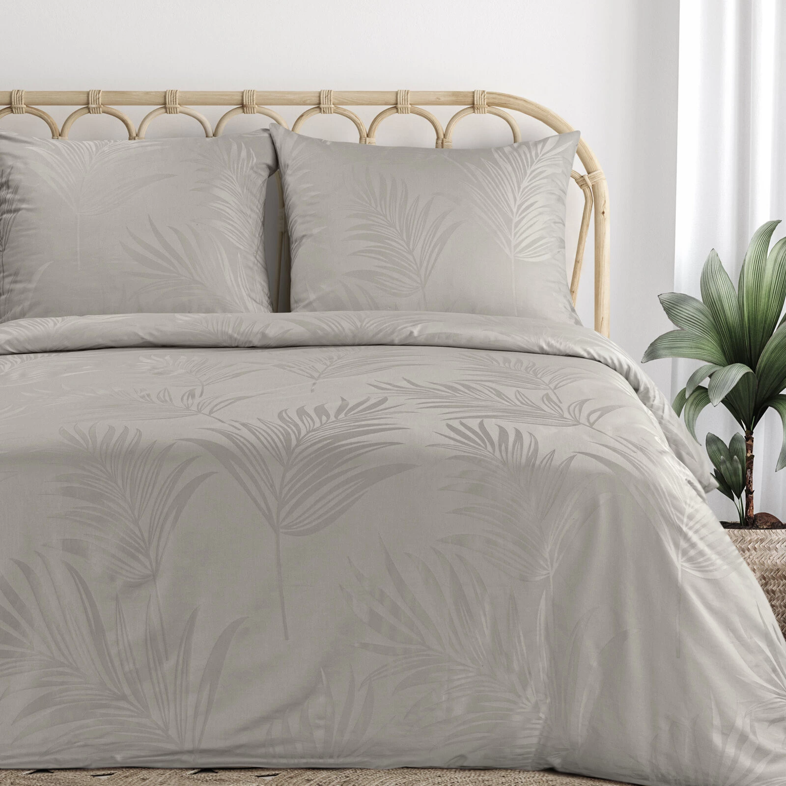 Pościel żakardowa z efektem 3d. szerokość: 160 cm, długość: 200 cm, kolor: szarobeżowy, Gramatura: 125 GSM, Skład: przód: 100% bawełna, żakard; tył: 100% bawełna, satyna