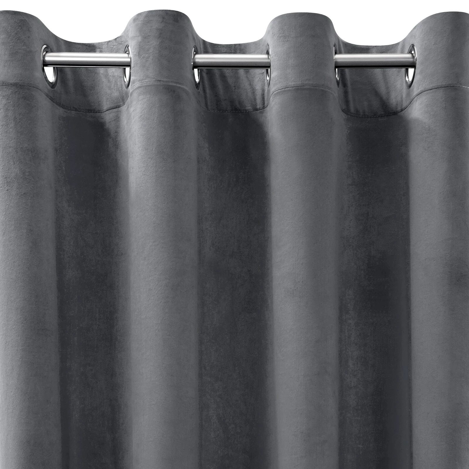 Komplet zasłon gotowych welwetowych szerokość: 140 cm, długość: 250 cm, kolor: grafitowy, Gramatura: 200 GSM, Skład: 100% poliester