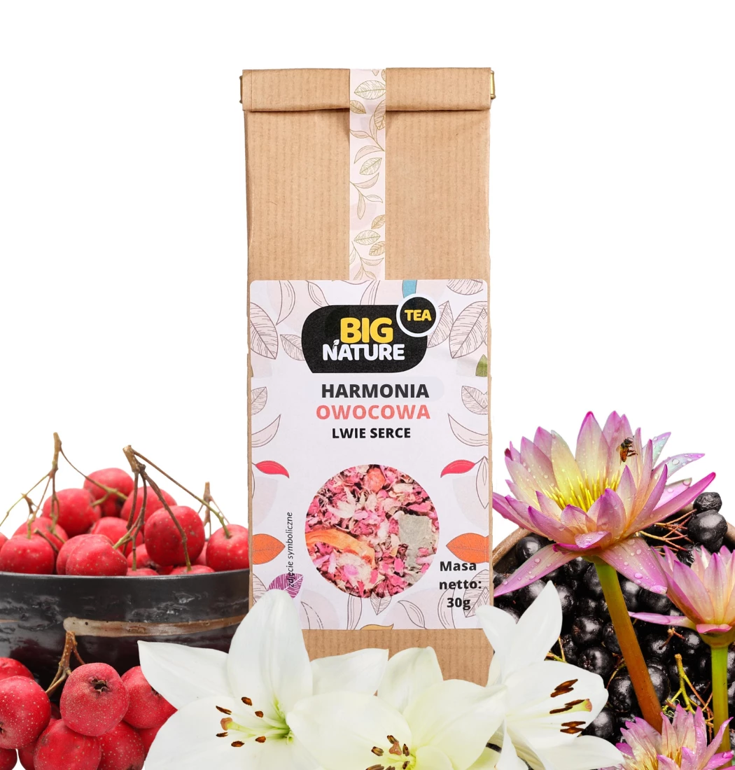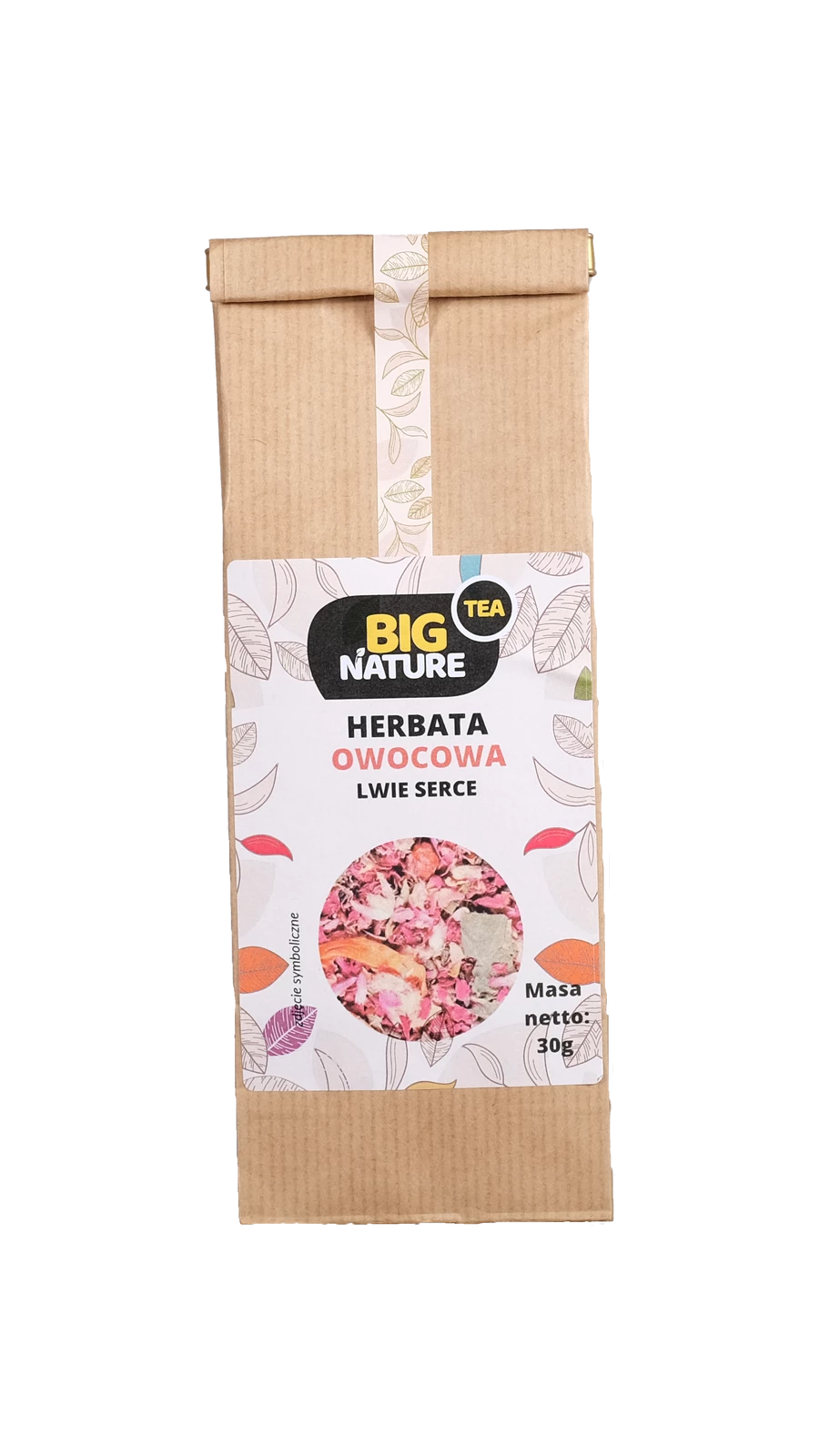 Opis: Opakowanie zawiera 30g owocowej herbaty "Lwie Serce".