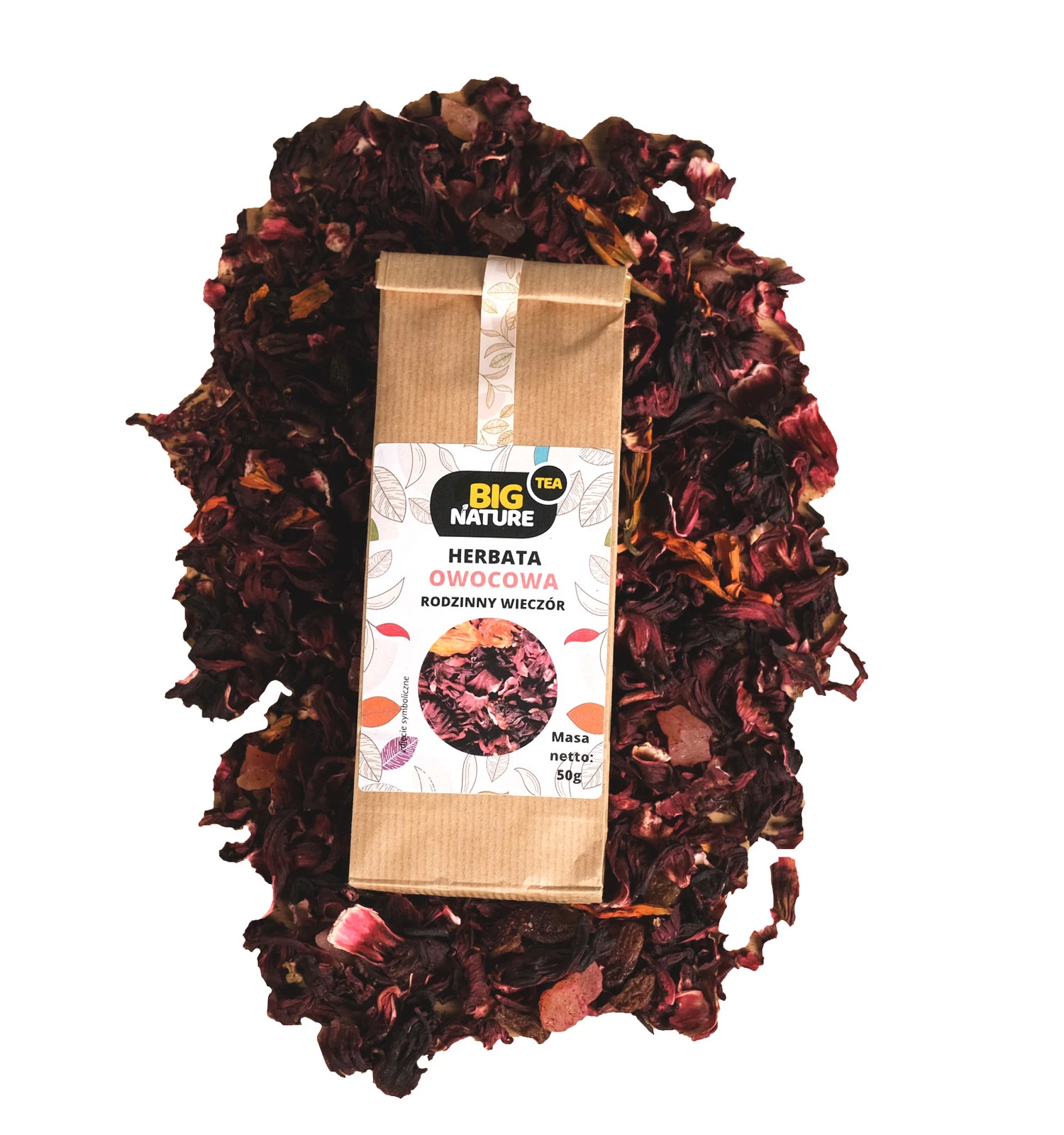 Opis: Opakowanie zawiera 50g owocowej herbaty "Rodzinny Wieczór".