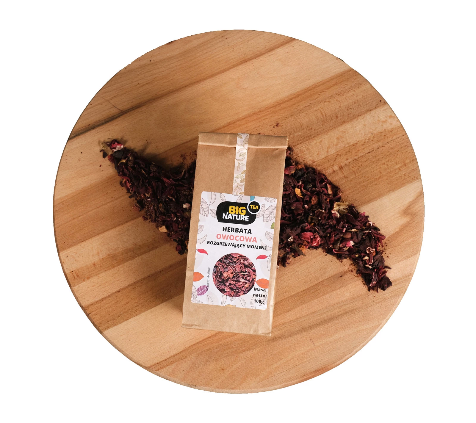 Opis: Opakowanie zawiera 100g owocowej herbaty "Rozgrzewający Moment".