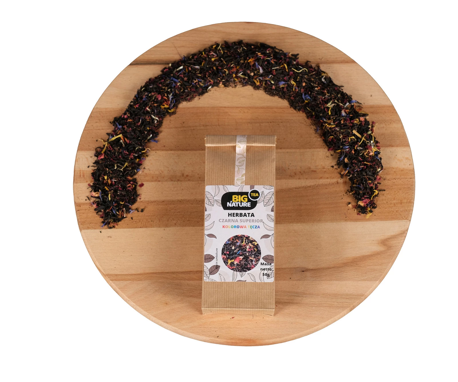Opis: Opakowanie zawiera 50g czarnej herbaty earl grey "Kolorowa Tęcza".