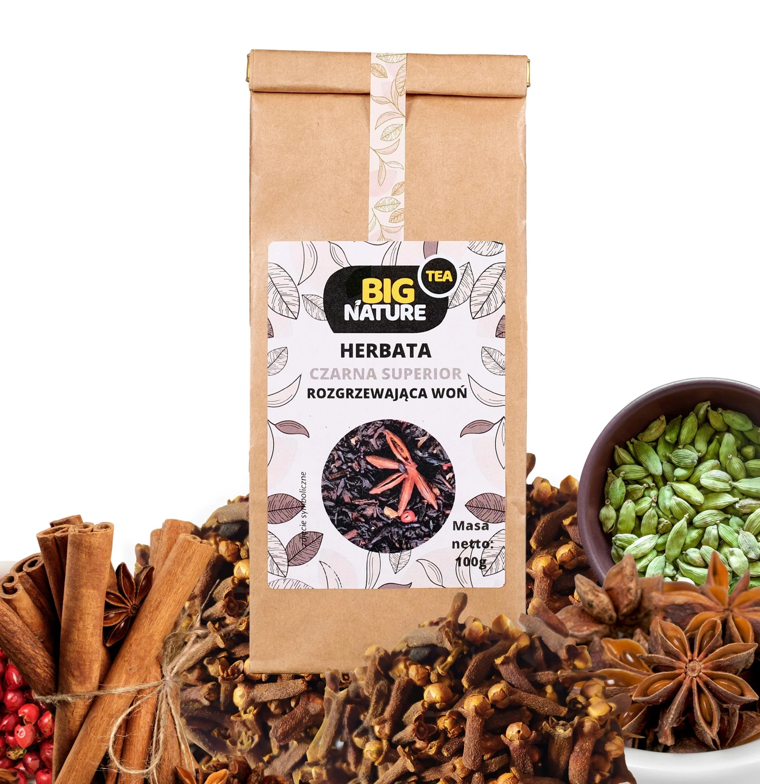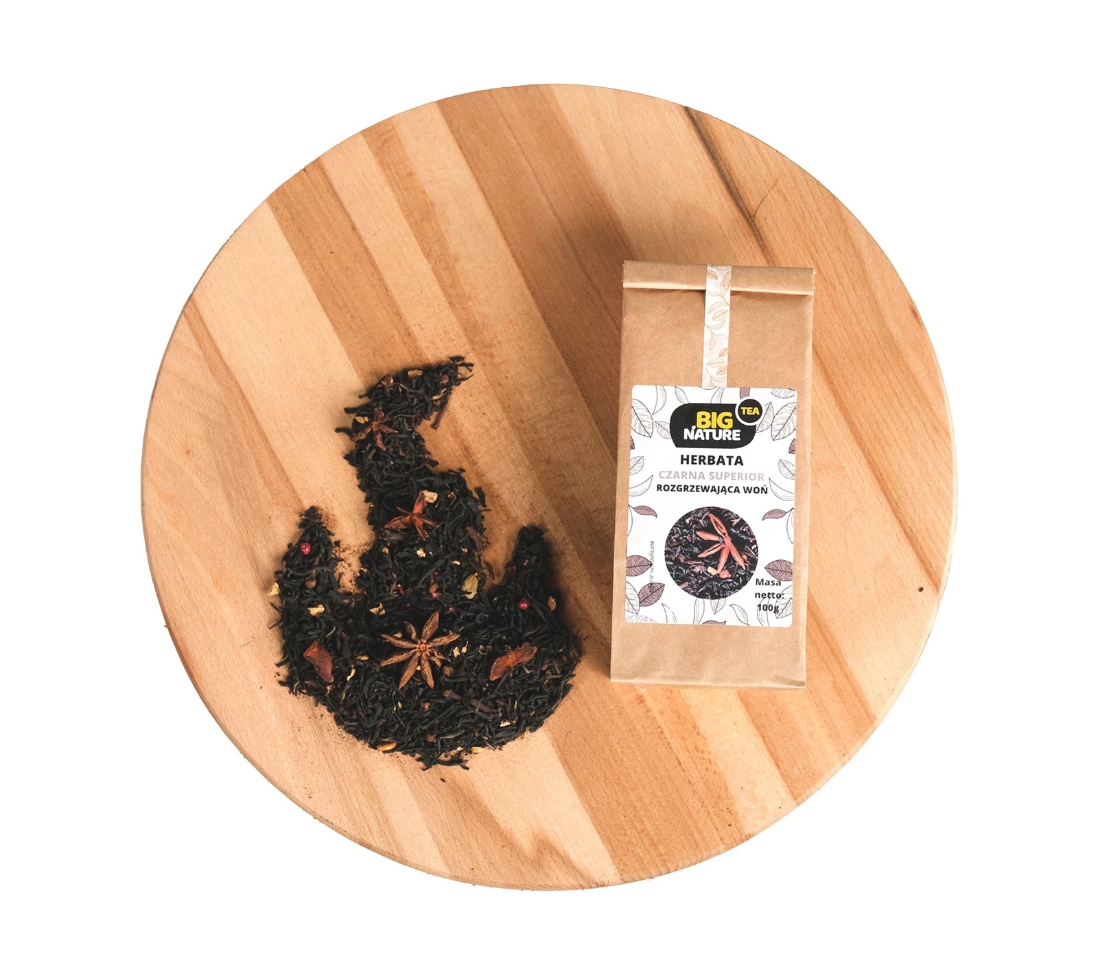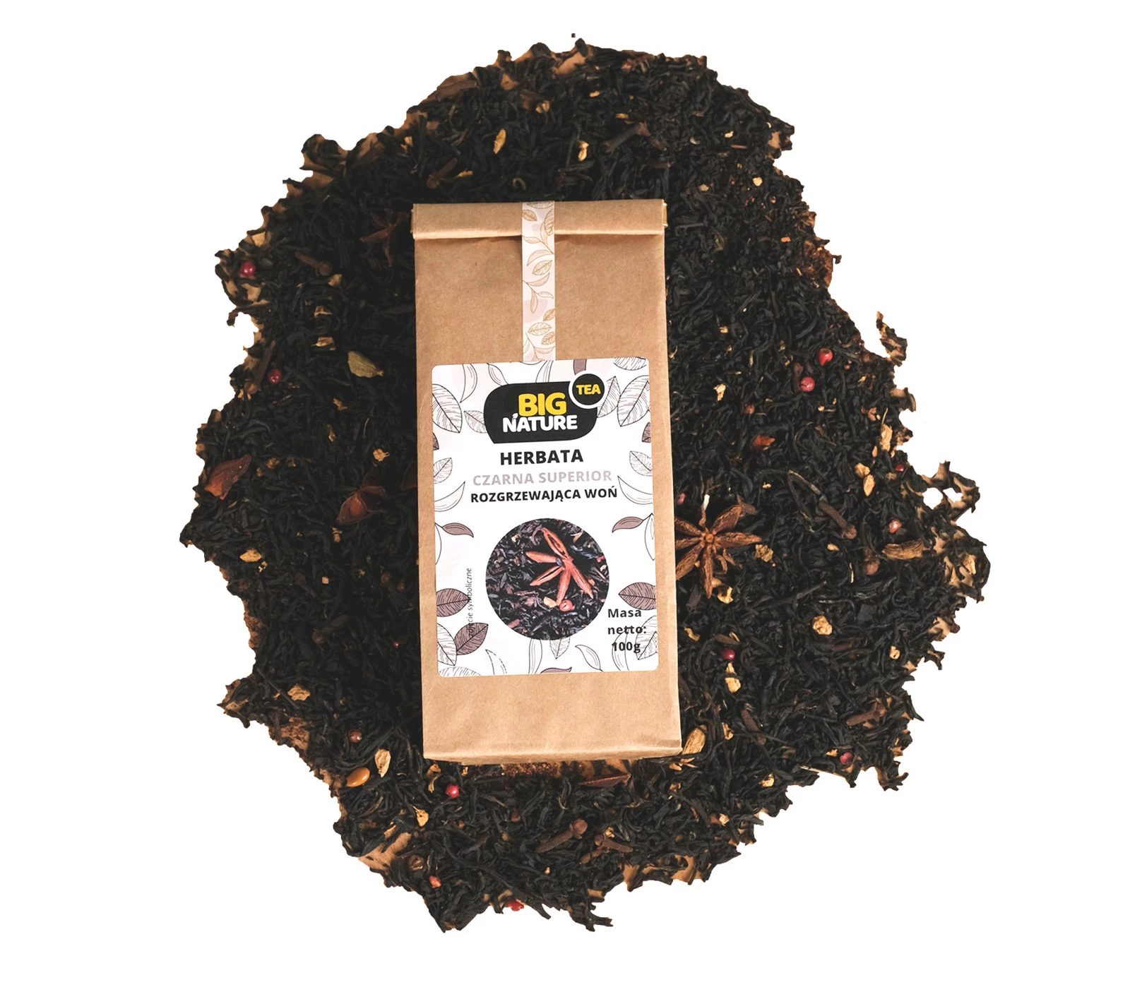 Opis: Opakowanie zawiera 100g czarnej herbaty superior "Rozgrzewająca Woń".