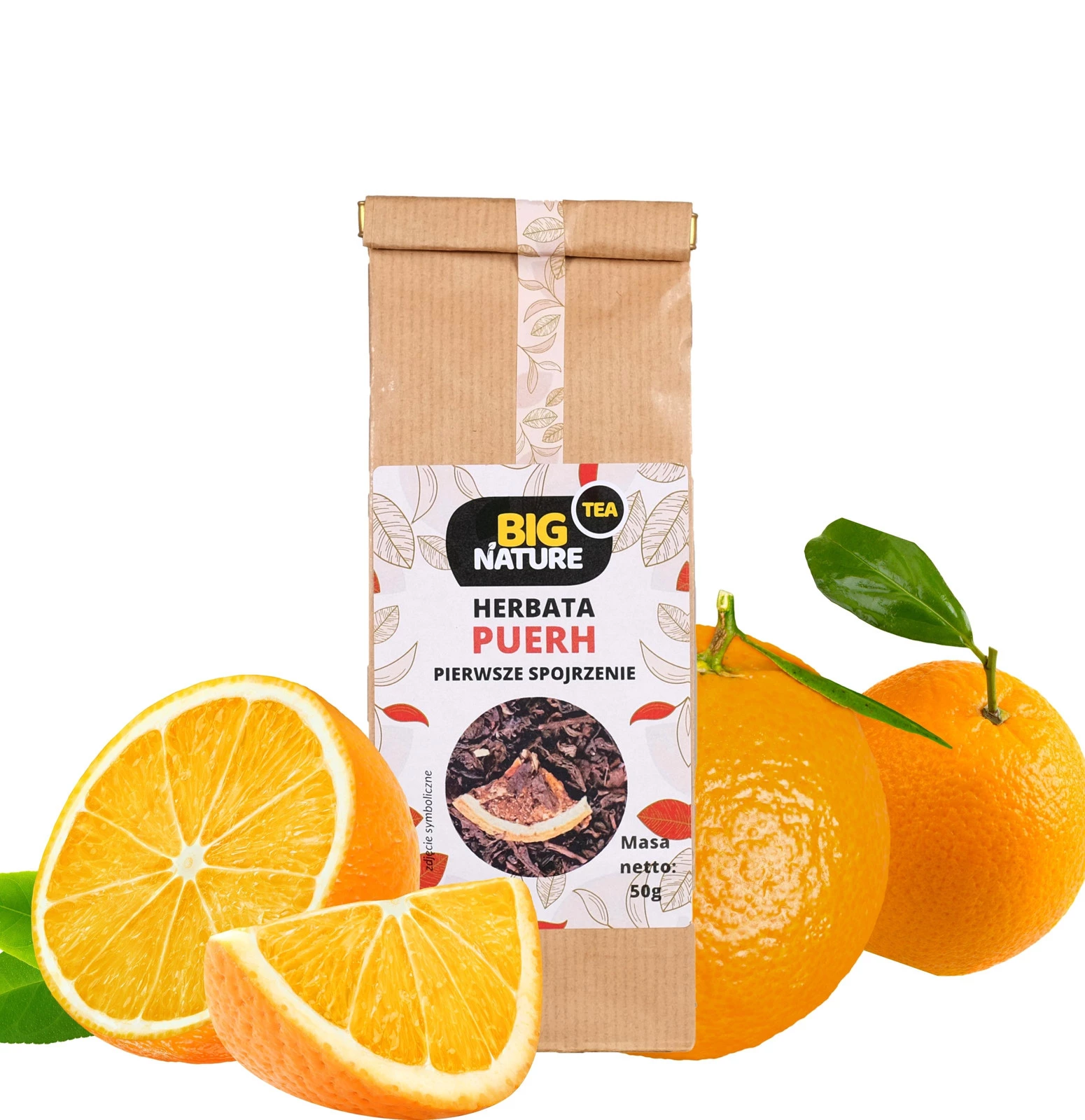 Składniki: herbata puerh, aromat, pomarańcz skórka i ćwiartka.