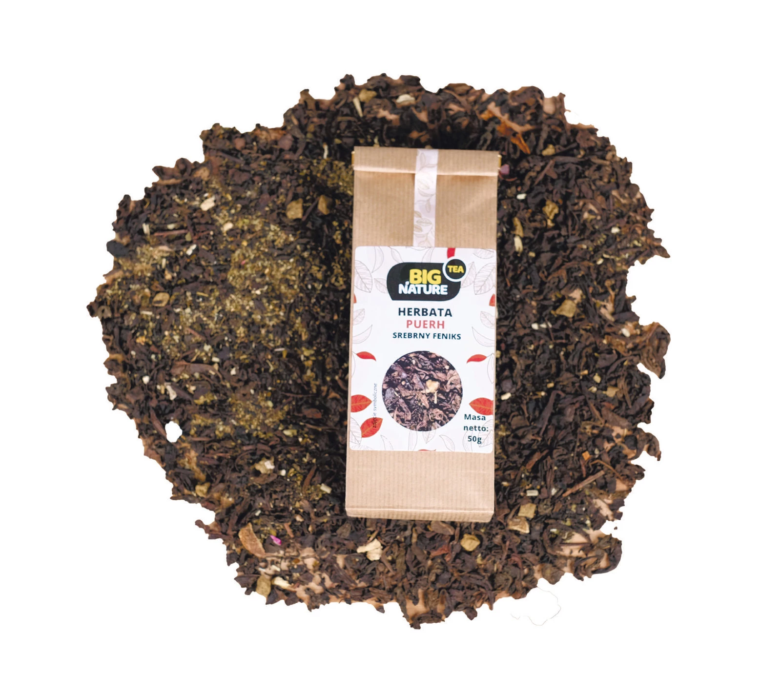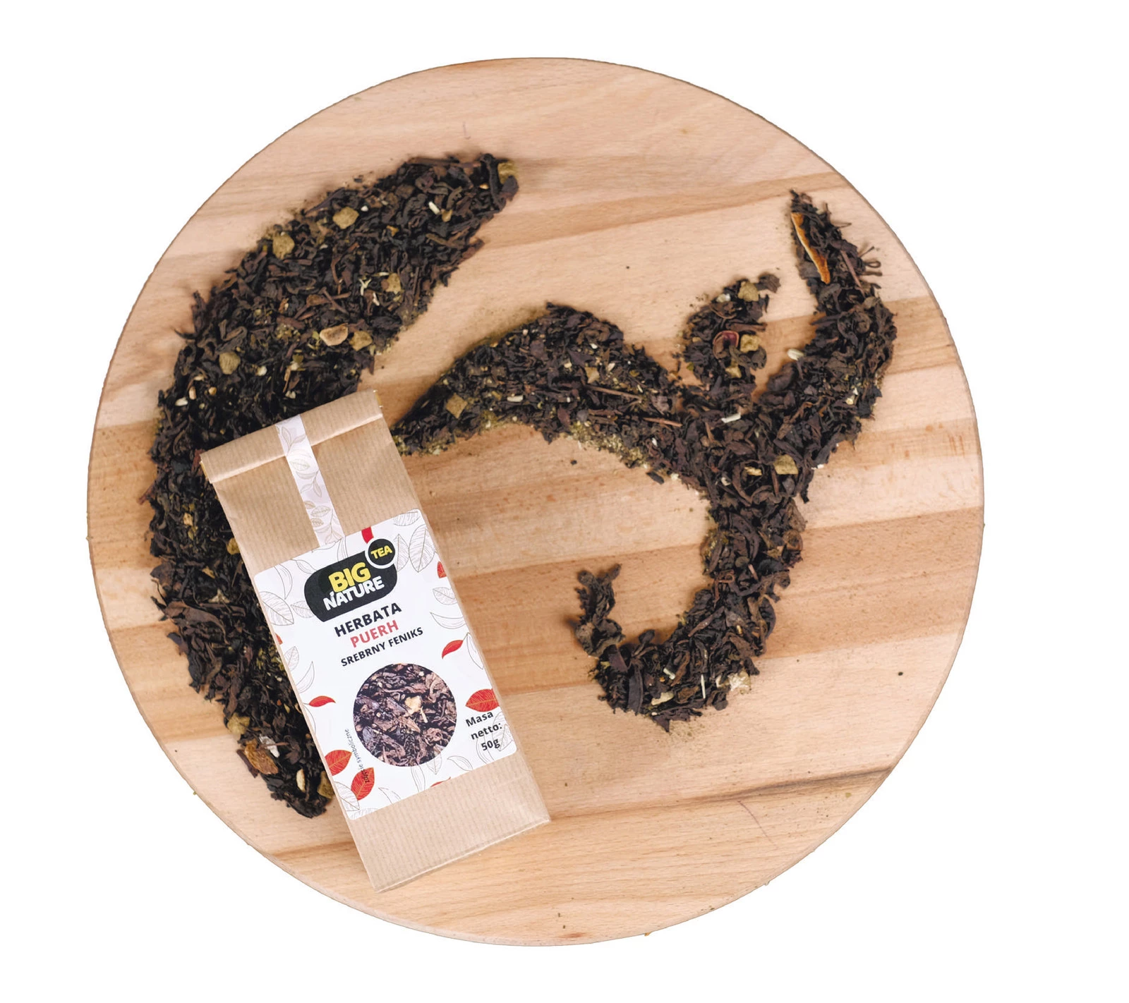 Opis: Opakowanie zawiera 50g herbaty "Puerh Srebrny Feniks".
