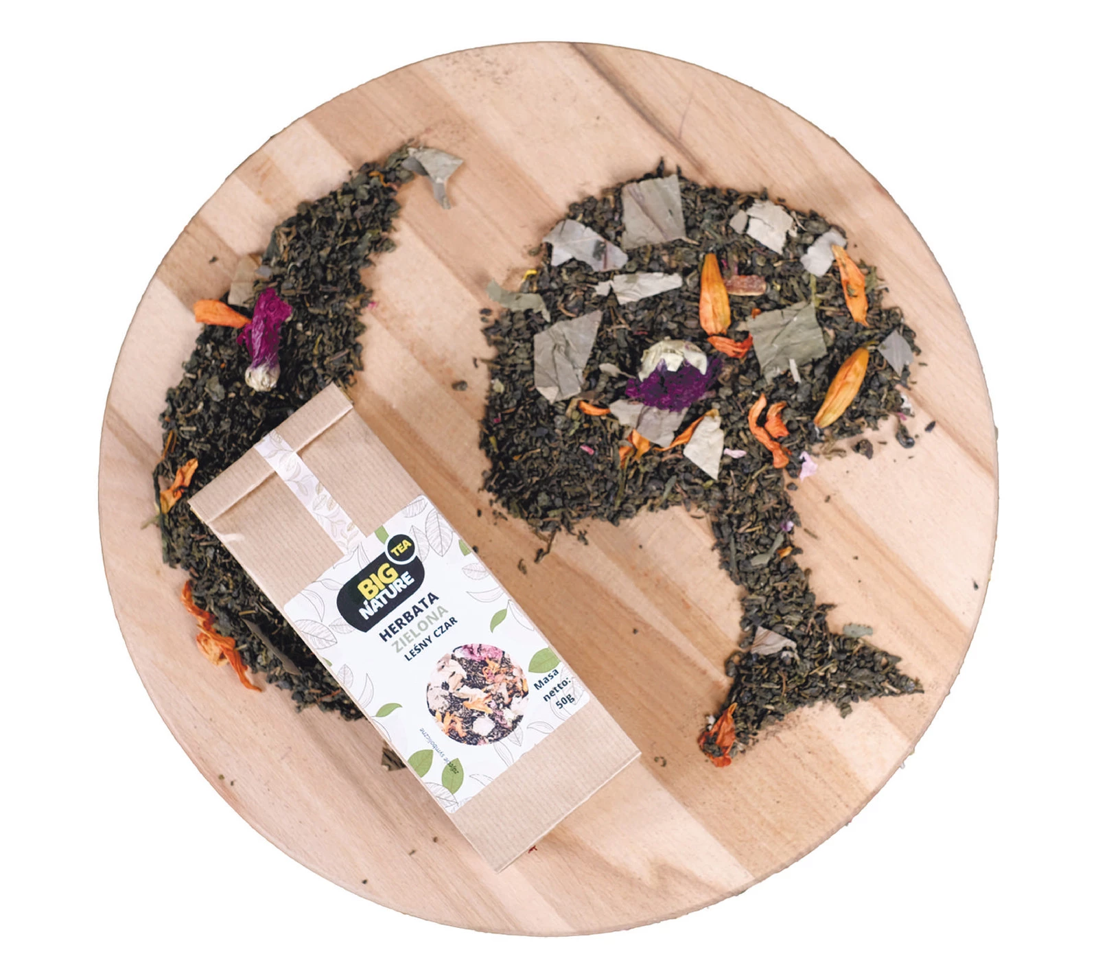 Opis: Opakowanie zawiera 50g zielonej herbaty "Leśny Czar".