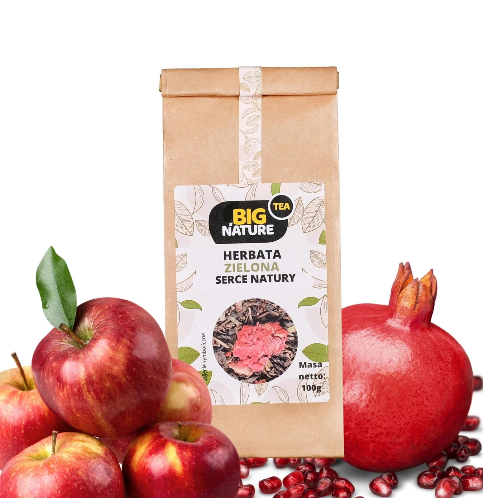 Opis: Opakowanie zawiera 100g zielonej herbaty "Serce Natury".